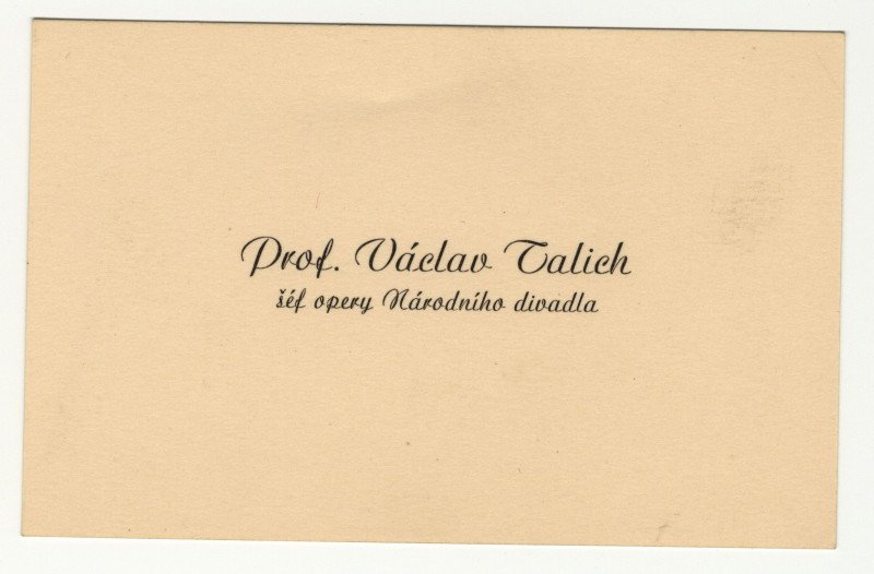 Fotografie ČTK - Václav Talich  na slavnostním večeru k narozeninám, 28. 5. 1958 v Závodním klubu Králodvorských cementáren A. Zápotockého. Fotografie - Václav Talich na výletě. Fotografie - CENTRAL EUROPEAN PRESS - Václav Talich s Milčou Mayerovou a její taneční skupinou před Vinohradským divadlem, po roce 1930. Fotografie ČTK - Václav Talich se svým žákem Charlesem Mackerrasem v roce 1946. Fotografie - Čechovskij, Oděsa - Václav Talich s Jaroslavem Kociánem a Josefem Šedivým v Oděse 1905. Fotografie - Agence ROL - Václav Talich při podpisu do zlaté knihy na radnici v Paříži 3. 12. 1935. Ateliérová fotografie - Talichův kvartet v Lublani 11. 5. 1910. Fotoateliér Aug. Berthold, Lublaň. Fotografie - Václav Talich s Otou Horákovou a Luďkem Mandausem po příjezdu do Amsterodamu v roce 1937. Fotografie - Václav Talich při odpočinku na lehátku v Julských Alpách v Jugoslávii v roce 1935 Fotografie - Václav Talich s manželkou Vidou a Josefem Sukem v Křečovicích v roce 1927 (?). Ateliérová fotografie - Václav Talich s otcem Janem, matkou Antonií a sourozenci Marií a Janem, kolem roku 1886. Ateliérová fotografie - Václav Talich se svými sourozenci (Jan, Marie, Antonín, Václav) v roce 1889. Fotoateliér Hofman, Klatovy. Fotografie ČTK - Václav Talich s prezidentem Edvardem Benešem a jeho chotí Hanou a oficiálními hosty na koncertě České filharmonie v Obecním domě v roce 1936. Upomínka a poděkování V. Talichovi od žákyň Spolkového československého dívčího reálného gymnasia v Praze XII., v Praze 15. 5. 1934. Upomínkové album, V upomínku Klub přátel umění v Třebíči, 1. 6. 1934. Taktovka v etui - dřevo a stříbro. K novému provedení Messinské nevěsty 1943 věnovala rodina Fibichova. Vysvědčení reálného gymnasia za druhé pololetí roku 1894/5, V Klatovech dne 13. července 1895. List domovský, Vydán v Praze dne 9. 1. 1941. Pohlednice R. Kubelíka V. Talichovi, Stockholm 7. 2. 1959. Dvoulist s karikaturami vytržený z dobového humoristického časopisu (s. 155 - 158). Pamětní standarta, 1928. Oznámení o zvolení V. Talicha členem České Akademie věd a umění, 25. 11. 1936. Dopis A. Zemlinského z Prahy V. Talichovi, nedatován, 1 list, manuskript. Dopis městské rady v Berouně V. Talichovi, 1 dvoulist, manuskript, Beroun 31. 10. 1937. Dopis ředitele Národního divadla v Praze Mojžíše-Loma V. Talichovi, Praha 4. 7. 1938. Pohlednice Karla Ančerla V. Talichovi, Tokio, 22. 10. 1959. Řád rumunské koruny IV. stupně s rozetou udělený V. Talichovi králem Michalem I. dne 7. 3. 1930. Srbský Řád sv. Sávy III. stupně udělený V. Talichovi králem Alexandrem I. dne 17. 11. 1933. Partitura - Bedřich Smetana, Má vlast, Praha, 1907. Úmrtní oznámení V. Talicha, 16. 3. 1961. Fotografie - Václav Talich sedí v křesle, vyobrazen s manželkou a vnukem v Berouně v roce 1958. Pamětní medaile na Talichovo působení ve Švédsku, 29.10.1937. Fotografie - Václav Talich s rodinou u stolu na terase v Rakousku - Salzkammergut v roce 1928. Fotografie - Václav Talich při podpisu programu na Pražském jaru v roce 1954. Fotografie ČTK - Václav Talich, portrét 1954. Fotografie ČTK - L. Nebor - Václav Talich a Karel Ančerl nad partiturou, při natáčení České filharmonie v Rudolfinu 8. 1. 1958. f.T126 - Fotografie ČTK - Václav Talich při děkování obecenstvu, po koncertu k zahájení Pražského jara 13. 5. 1954. f.T136 - Fotografie ČTK - Václav Talich s Václavem Smetáčkem (v pozadí Jan Seidel) při jmenování národním umělcem v roce 1957. Fotografie - Václav Talich v orchestru hudební školy svého otce Jana Talicha, ředitele kůru v Klatovech, okolo roku 1897. Fotografie - Václav Talich s Rafaelem Kubelíkem v roce 1946. Fotoateliér Karel Hájek (1900-1978). Fotografie - Václav Talich s Jiřím Frejkou před vchodem do Národního divadla v roce 1937. Fotografie ČTK - Václav Talich při zahájení koncertu symfonie Má vlast, v Lucerně v roce 1946. Uložení nevystavené oborové části Berounské sbírky MČK – podsbírky: další – Václav Talich Uložení nevystavené oborové části Berounské sbírky MČK – podsbírky: další – Václav Talich Uložení nevystavené oborové části Berounské sbírky MČK – podsbírky: další – Václav Talich Ateliérová fotografie - absolventi konzervatoře Václav Talich, Jaroslav Křička, Rudolf Karel v roce 1903. Fotoateliér J. Faix, Praha Ječná 11 Vysvědčení reálného gymnasia za první pololetí roku 1895/6, V Klatovech dne 15. února 1896. Osvědčení o státním občanství ČR, V Berouně dne 11. 4. 1956. Rukopis - Antonín Dvořák: Život (Carneval) Ouvertura, Vysoká, dne 14. 8. 1891. Kovové těžítko ve tvaru notového stojánku, 1941. Dopis Karla Ančerla V.Talichovi, Praha, 18. 6. 1935. Rypsová stuha, hedvábí, 25. 9. 1926. Vizitka: Prof. Václav Talich šéf opery Národního divadla.