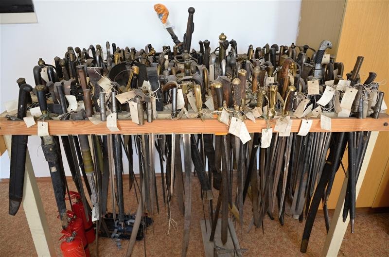 PředmětyVe sbírce jsou zastoupeny zbraně palné (pistole, revolvery, pušky lovecké a vojenské); zbraně chladné (meče, tesáky, kopí, halapartny, rapíry apod.). Ostatní předměty tvoří dělové koule, helmy, zbroj, různé typy munice (náboje do vojenských pušek - patrony), střepiny z granátů a další torza válečné munice (první a druhá světová válka), upomínkové předměty z vojenského materiálu apod.