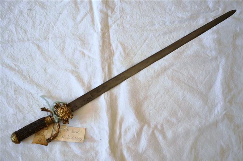 Bodák s pevnou koženou pochvou, vyraženo 766 Uspořádání chladných zbraní Uložení palných zbraní v trezoru Trezorové skříně pro uložení palných zbraní Prachovnice z rohoviny Přilba zv. pappenheimka, s ochranou nosu výsuvným nánosníkem a s lamelovou ochranou zátylku, 17. století Kleště na odlévání kulek, 18. století Kovové plátové rukavice, 17. století Rakouská armádní jezdecká pistole, systém Lorenz, vzor 1862, výroba 1864 Rakouská armádní puška Wenzel,  vzor 1867 Lovecká kolečková ručnice s mosaznou garniturou, pažba bohatě intarzovaná loveckými výjevy, 16. století Rakouská perkusní pěchotní puška, vzor 1842 Pár kovových třmenů, třmenový oblouk a můstek z tyčoviny Přilba vojáka pruské armády, zv. piklhaubna Rakouský lovecký tesák, 1. poloviny 19. století Meč se záštitou ve tvaru C, 15. století Lovecká kulovnice s perkusním zámkem, osmihranná hlaveň, pažba zdobena řezbou, 1750 Lovecká kuše s intarzovanou pažbou, 16. století Rakouská armádní puška soustavy Lorenz, vzor 1854 Dvojhlavňová kapesní perkusní pistole, 19. století Železná střepina, špička malé bomby, 1914-1918 Porcelánová lahev plochá, lemovaná kovem, kolem 1900 Krátká pěchotní puška, systém Werdl, výroba 1870 Kord neznámé výroby, rukojeť ve tvaru písmene D Šavle ke slavnostní hornické uniformě, na čepeli nápis GLÜCK AUF!, vzor 1861 Rakouský lovecký tesák, mušle z mosazi s vyobrazením sedícího lovce s puškou, 19. století Hlava dělostřelecké střely, vyraženo ANSTA 2/12 FB Lovecká kolečková puška, pažba po celé délce intarzována kostí, 16. století Rakouský hasičský tesák s rovnou čepelí, 19. století Železná střepina, torzo malé bomby, 1914-1918 Lovecká puška jednohlavňová, hlaveň osmihranná, 19. století
