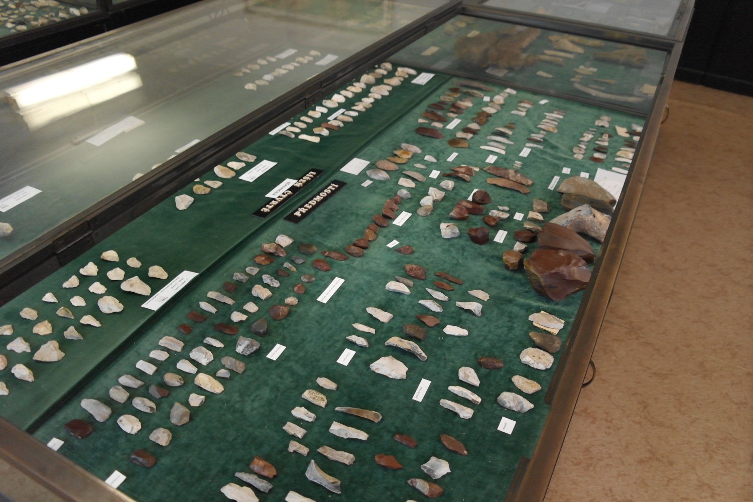 paleolit, většinou mladý, a mezolit. Z pozdějšího (zemědělského) pravěku pocházejí jen štípané industrie z těžních revírů (zatím v doprovodné dokumentaci). Sbírka obsahuje pozůstalosti soukr. sběratelů z přelomu 19. a 20. Století (M. Kříž, K.J. Maška, J. Knies), dále materiál z rozsáhlých výzkumů prof. K. Absolona a z vlastní poválečné akviziční činnosti MZM.