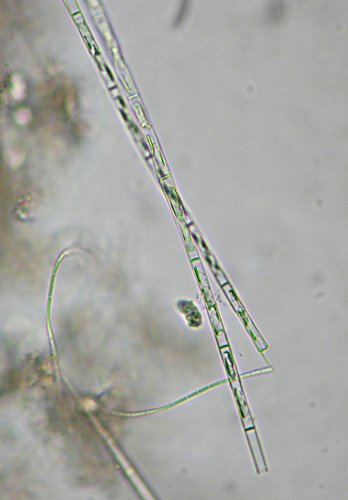 hy0036 Lepocinclis ovum (EHRENB.) LEMM. rybník Čežárka (kat. úz. Vodňany) 1982/09/16 leg. T. Kepr 1982/09/16, foto L. Hájková. Krásnoočko L. ovum se vyskytuje v organicky zatížených vodách. hy0186 Ceratium furcoides (LEVANDER) LANGHANS Kaolínové jezírko u Kateřiny (kat. úz. Nový Drahov) leg. O. Skácelová 1995/08/02, foto L. Hájková.  Obrněnka vyskytující se v planktonu čistších vod. hy0217 Anomoeoneis sphaerophora (KUTZ.) PFITZ. Národní přírodní rezervace SOOS, okraj mofetového pole. leg. O. Skácelová 1995/08/06, foto L. Hájková 1995/08/06. Slanomilná rozsivka s velkou schránkou. hy0006 Pseudanabaena limnetica (LEMM.) KOM.   V planktonu rybníka Nesyt v NPR Lednické rybníky (kat. úz. Sedlec u Mikulova) leg. O. Skácelová 1993/05/05, foto L. Hájková. hy0082 Eudorina elegans EHRENB. rybník Malá Rýdlovka (kat. úz. Vodňany) leg. O. Skácelová 1982/04/08, foto L. Hájková.  Koloniální zelený bičíkovec častý v rybnících. hy0233 Ceratium hirundinella (O.F.MULLER) SCHRANK  leg. P. Pařil 1993/06/02, foto L. Hájková.  Stará pískovna u Veselí nad Lužnicí (kat.úz. Vlkov). Obrněnka vyskytující se často v letním planktonu. hy0237 Microspora amoena (KUTZ.) RABENH. Dyje – Střelnice (kat. úz. Vranov nad Dyjí) leg. P. Pařil 1993/06/15, foto L. Hájková.  Zelená vláknitá řasa vytvářející trsy z nerozvětvených vláken. HY469 Bosmina longirostris O. F. MÜLLER. Rybník Kuprovka (kat.úz. Radvanice v Čechách), leg. O. Skácelová 1997/07/29, foto L. Hájková. Drobná perloočka typická pro stojaté vody. hy0476 Gloeotrichia natans RABENH. ex BORN. et FLAH. Tůň v NPP Plané Loučky (kat.úz. Olomouc), leg. O. Skácelová 1997/07/08, foto L. Hájková. Sinice neznečištěných zarostlých tůní a rybničních břehů. hy0498 Strombomonas verrucosa (DADAY) DEFL.  NPP Plané Loučky, tůň „Esíčko“  leg. O. Skácelová 1998/07/18, foto L. Hájková. Krásnoočka rodu Strombomonas jsou ukryta uvnitř schránky inkrustované Fe, Mn vzorky planktonu a nárostů připravené ke zpracování v laboratoři výstava Sinice a řasy v potravě člověka výstava Sinice a řasy v potravě člověka Krustový mokřad, Velká podkrušnohorská výsypka, locus classicus nově popsaného druhu Dichothrix ledereri SKÁCELOVÁ 2006 Krustový mokřad, Velká podkrušnohorská výsypka, locus classicus nově popsaného druhu Dichothrix ledereri SKÁCELOVÁ 2006 sterocapsa belizensis KOMÁREK & KOMÁRKOVÁ-LEGNEROVÁ 2007 - perokresba + mikrofotografie Lemmermanniella uliginosa KOMÁREK & KOMÁRKOVÁ-LEGNEROVÁ 2007 - mikrofotografie Lemmermanniella uliginosa KOMÁREK & KOMÁRKOVÁ-LEGNEROVÁ 2007 - perokresba + mikrofotografie hy0519 Oscillatoria limosa AG. ex GOM. Jedovnický potok nad Rudickým propadáním, povlaky na bahnitých náplavech (kat. úz. Jedovnice), leg. O. Skácelová 1998/05/23, foto L. Hájková. hy0074 Synura sp. EHRENB. rybník Malá Outrata (kat. úz. Vodňany) leg. O. Skácelová 1982/04/08, foto L. Hájková.  Koloniální zlativka může zjara v chladné vodě rybníků nebo tůní vytvářet hnědé zbarvení hy0112 Aulacoseira granulata var. angustissima (O.F.MÜLLER) SIMONSEN , starším jménem Melosira granulata (EHRENB.) RALFS, rybník Velká Podvinice (kat. úz. Vodňany) 1982/09/16 leg. T. Kepr 1982/09/16. hy0120 Pediastrum biradiatum MEYEN Velký Ústavní rybník (kat. úz. Vodňany) 1982/09/16 leg. T. Kepr 1982/09/16, foto L. Hájková. Zelená řasa vytvářející plochá síťovitá coenobia. hy0144 Pediastrum simplex MEYEN Staré říční rameno (bývalé koryto Moravy ), Marchauen, Dolní Rakousko. leg. O. Skácelová 1992/07/15, foto L. Hájková. Původně tropický druh je považován za invazivní. hy0183 Microspora willeana LAGERH. Rašelinné jezírko u Kateřiny (kat. úz. Nový Drahov) leg. O. Skácelová 1995/08/02, foto L. Hájková.  Zelená vláknitá řasa vyskytující se ve vodách chudších na živiny. hy0200 Phacus orbicularis HUBN.  zrašelinělé tůňky u kaolínového jezírka u jezírka Starost, (kat. úz. Nový Drahov) leg. O. Skácelová 1995/08/04, foto L. Hájková.  Krásnoočko žije v různých typech vod. hy0214 Amphiprora paludosa W.SMITH var. subsalina (kat. úz. Nový Drahov) leg. O. Skácelová 1995/08/02, foto L. Hájková.  Slanomilná rozsivka se slabě zkřemenělou schránkou, vyskytuje se na slaništích. hy0225 Microspora crassior (HANSG.) HAZ. Teplá Vltava nad Kvildou, nárosty zelených vláknitých řas. leg. P. Pařil 1993/07/10, foto L. Hájková. 1993/07/10 Na konci vlákna jsou dobře vidět H-kusy stěn. hy0231 Pediastrum boryanum (TURP.) MENEGH. Rybník Velký Tisý (CHKO a BR Třeboňsko) leg. P. Pařil 1993/06/02, foto L. Hájková. Běžný druh zelené rybniční řasy, vytváří plochá coenobia. hy0368 Cymbella ehrenbergii KUTZ. NPR Písečný rybník, nárosty na ponořených větvích a rákosu (kat.úz. Milotice u Kyjova), leg. O. Skácelová 1997/07/29, foto L. Hájková. Rozsivka neznečištěných vod. hy0494 Cylindrospermum cf. stagnale (KUTZ.) BORN. et FLAH. Tůň v NPP Plané Loučky (kat.úz. Olomouc), leg. O. Skácelová 1998/07/18, foto L. Hájková. Sinice Cylindrospermum žijí v půdě a zarostlé vodě. hydrobiologické pracoviště bedny se vzorky planktonu a nárostů konzervovanými formaldehydem výstava Sinice a řasy v potravě člověka výstava Sinice a řasy v potravě člověka preparát(HY007) a vzorek vypálených schránek rozsivek(HY011), Mlýnský rybník NPR Lednické rybníky vzorek nárostu z Krustového mokřadu, Velká podkrušnohorská výsypka, obsahující sinici Dichothrix ledereri SKÁCELOVÁ 2006 vzorky nárostů z alkalických mokřadů Belize (sběry J. Komárka) Asterocapsa belizensis KOMÁREK & KOMÁRKOVÁ-LEGNEROVÁ 2007 - mikrofotografie hy0526 Microthamnion kuetzingianum NAG. Studánka Blaženka, zastíněné stěny nádržky pod pramenem (kat. úz. Brno - Kohoutovice), leg. O