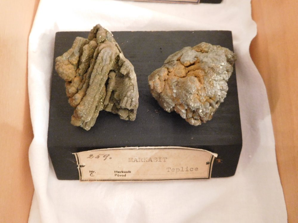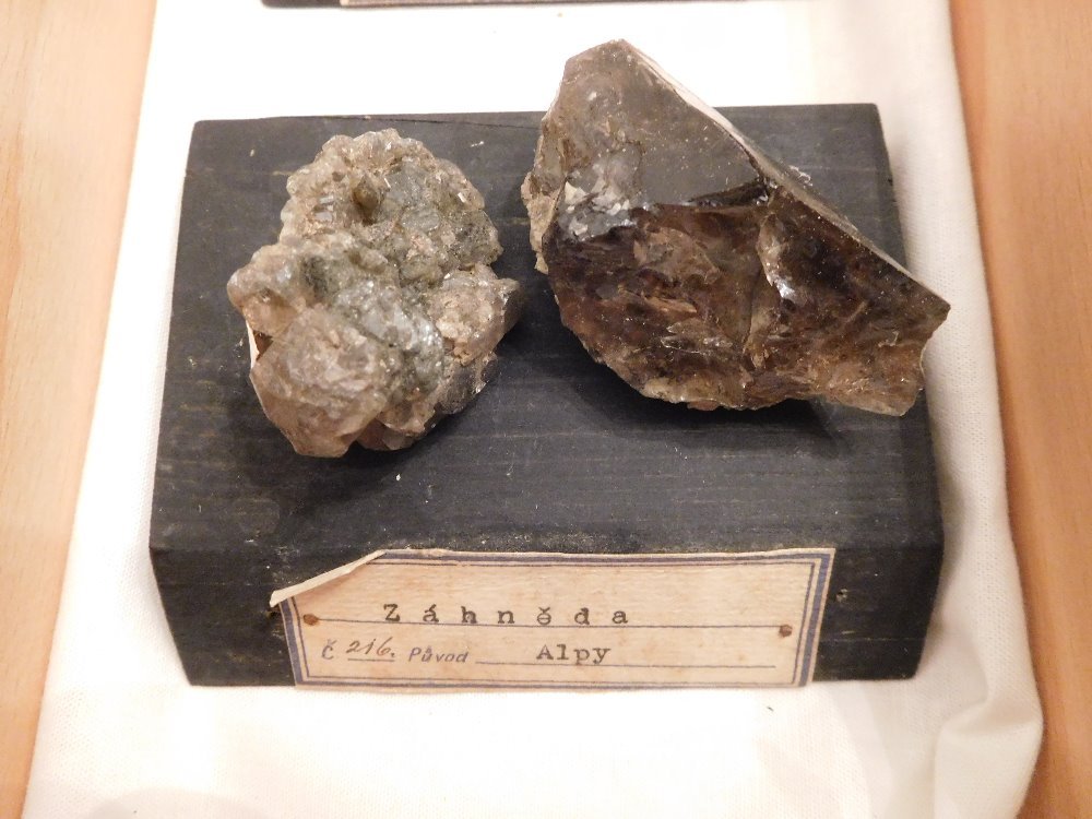 | Předměty | Ve sbÃrce, která ÄÃtá 459 pÅÃrůstkových ÄÃsel, je celkem 531 ks minerálů a hornin. Ve sbÃrce se nacházejà ametysty, acháty, opály, zlato na bÅidlici z Hercegoviny, stÅÃbro z Kremnice, ryzà mÄÄ z Michiganu, rumÄlka z důležitého evropského naleziÅ¡tÄ v Idriji ve Slovinsku, kryolit z Grónska, kÅemen koÄiÄà oko z Bavorska, dále kÅišťál a záhnÄda z Alp, krevel vláknitý z Ruska, hematit vláknitý ze Å¡výcarského St. Gotthardu, množstvà nejrůznÄjÅ¡Ãch vápenců, solÃ, uhlÃ.