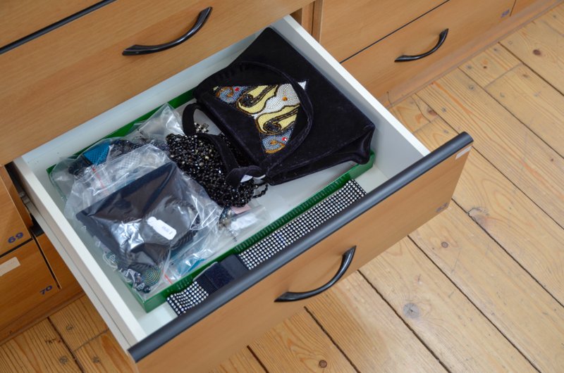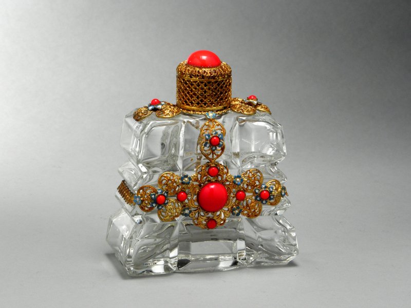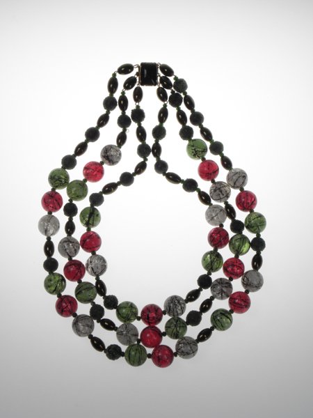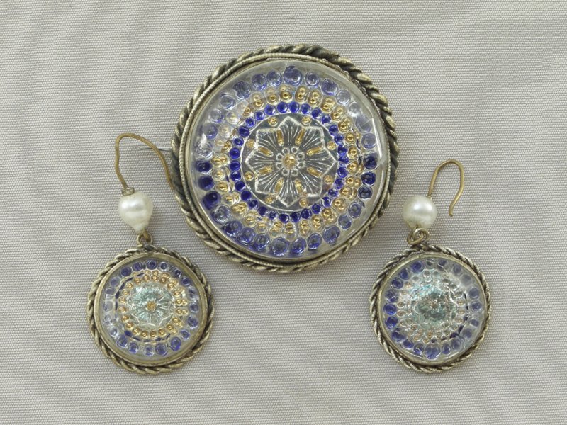 Kabelka společenská – textil, sklo, flitry; zaoblený tvar, celý povrch pošit modrými flitry a skleněnými čípky; Krušnohoří; první ¼ 20. století Brož - dřevo, obecný kov; kruhový tvar s obdélníkovou destičkou; maturitní práce Bohumila Pöschlová; SUPŠ v Jablonci n. N.; 1991 Kabela – textil, dřevo; dřevěné perličky tvoří geometrický ornament; J. Schowánek; Albrechtice; 1938 Peněženka – textil, dřevo; dřevěné perličky tvoří geometrický ornament; J. Schowánek; Albrechtice; 1936 - 1938 Brož-ryba – cínová slitina, studený smalt; maturitní práce Markéty Kraftové; SUPŠ v Jablonci n. N.; 1993 Brož-motýl – litina, sklo; ražený filigrán; Sláva Zajcev, s. p. Bižuterie – Silka; Jablonec nad Nisou, 1975 Soubor osazovacích destiček – porcelán, malba; kruhový, oválný a čtverhranný tvar; Jablonecko; konec 19. století Spona – obecný kov, sklo, email; obdélníkový tvar; Jablonecko; přelom 19. a 20. století Přezka – obecný kov, smalt; oválný tvar; Jablonecko; konec 19. století Přezka – obecný kov, smalt; oválný tvar; Jablonecko; konec 19. století Přezka – obecný kov, smalt; obdélný tvar na jedné straně zaoblený; Jablonecko; konec 19. století Spona tzv. „černá bižuterie“ – obecný kov, sklo; tvar mašle, kovové výlisky se šatony a skleněné černé broušené kameny; Smržovka; konec 19. století Flakon s kovovou aplikou – sklo, obecný kov; malba, skleněné mugle; Jablonecko; 20. a 40. léta 20. Století Flakon s kovovou aplikou – sklo, obecný kov; malba, skleněné mugle; Jablonecko; 20. a 40. léta 20. století Souprava (Náhrdelník, náušnice) – obecný kov, sklo; kotlíková řetězovina, stylizovaná motiv jablka a lístků; Bižuterie Česká mincovna; Jablonec nad Nisou; 2001 Jehlice - bílý kov, šatony krystal, perleť, rostlinný motiv; Čechy; 1. čtvrtina 20. století  Brož - porcelán, kov, malba, lept; oválný tvar; Státní odborná škola pro umělecký průmysl Jablonec nad Nisou; 1948  Ozdoba-znak města Jablonce – kov, skleněné šatony; Jablonecko; konec 19. století Hřeben do vlasů – obecný kov, sklo; oboukový tvar, s řetízky; Jablonec nad Nisou;  1850 - 1860 Hřeben do vlasů – plastická hmota, sklo, obecný kov; členitý tvar, plastika dívčí hlavy, vlasy tvoří klubko hadů; Jablonec nad Nisou; kolem r. 1900 Náhrdelník-třířadá kaskáda – sklo, plastická hmota; n. p. Skleněná bižuterie; Jablonec nad Nisou;  1963 Náhrdelník-třířadá kaskáda – broušené perle, podlouhlá záponka; n. p. Brusírny kamenu; Jablonec nad Nisou; 1950- 1957 Náhrdelník-třířadá kaskáda – sklo, plastická hmota, čtvercová záponka; n. p. Železnobrodské sklo; Železný Brod; 1962 Souprava (Brož + náušnice) – obecný kov, sklo; oválný tvar s třásněmi; Jablonecko; kolem r. 1860 Brož – černé mačkané sklo, obecný kov; oválný tvar, gema s ženským poprsím; Smržovka; kolem r. 1870 Souprava (Přívěsek, brož, náušnice) – obecný kov, sklo; ražený filigrán, speciální oválné mugle „harlekýn“; Jablonec nad Nisou; kolem r. 1940 Límcový náhrdelník „Paví oko“ - sklo, textil; rokailové čípky; Jarmila Hlavová; Praha; 1974 Nášivka dekorativní – obecný kov, sklo; tzv. černí bižuterie, stylizovaná hlava ptáka; Smržovka; kolem r. 1900 Podložka – dřevo; kruhový tvar, šité dřevěné perle; J. Schowánek; Jiřetín; první ½ 20. století Depozitář sbírky bižuterie 01 Depozitář sbírky bižuterie 02 Depozitář sbírky bižuterie 03 Přívěsek – stříbro, tepaný plech, granátky, smalt, kolorovaná rytinka; Čechy; 1848 Soubor broží – obecný kov, sklo; žákovská práce Josefa Kittla; Kokonín; 1905 Náhrdelník-límec – sklo, obecný kov; měkké pájení speciálních kotlíků a planžet; Hauferová, Bižuterie Česká mincovna; Jablonec nad Nisou; 1999 Kabelka rokailová – sklo, textil, obecný kov; čtvercový tvar, kompozice barevných květin s listy; poslední 1/3 19. století Spona dvoudílná – obecný kov, šatony krystal, skleněný kámen siam ruby, pokovení starostříbro a zlato; srdcovitý tvar; Jablonecko; 20. - 40 léta 20. století                   Brož – černé sklo, obecný kov; ováný tvar, při okraji zubořez, reliéfní portét ženy z profilu; Jablonecko; polovina 19. století Brož-motýl – kov, perleť, sklo; tvar motýla; Jablonecko; 1912 Souprava (Brož + náušnice) – sklo, kov; kruhový tvar, dekorováno zlatou ornamentální malbou, osazeno v tombakovém rámečku; Jablonec nad Nisou; kolem r. 1860 Prstýnek – obecný kov, sklo; kruhový tvar s bohatou hlavicí; Kokonín; kolem poloviny 19. století Spona-dvoudílná šatová – bíle pokovaný tombak, email, sklo; čtvercový tvar; Jablonec nad Nisou; kolem r. 1900 Kabelka – obecný kov, sklo, textil; obdélný tvar, tělo kabelky z rokailu s třásněmi, kovový rámeček s řetízkem; Jablonecko; kolem r. 1920 Náhrdelník-dvouřadá kaskáda se střapcem – skleněné perle/rokail; obecný kov; uprostřed velký kruhový terč s destičkou z černé umělé hmoty; n. p. Skleněná bižuterie; Jablonec nad Nisou; 1962 Brož – mačkané sklo; tvar listu, dekor aurora borealis; n. p. Skleněná bižuterie ; Jablonec nad Nisou;  1962 Náhrdelník-dvouřadá kaskáda – perle z plastické hmoty; nitkový dekor; n. p. Skleněná bižuterie; Jablonec nad Nisou;  1963 Brož – litá, obecný kov, voskované perle; tvar větvičky jmelí; n. p. Skleněná bižuterie Jablonec nad Nisou;  1963 Souprava (brož + náušnice) – obecný kov, sklo; srdcovitý tvar brože, skleněné kameny navety, řetězovina, kulaté perle; n. p. Skleněná bižuterie; Jablonec nad Nisou;  1963 Brož – sklo, obecný kov; asymetrický tvar, na podložce ketlované perle; n. p. Brusírny kamenu; Jablonec nad Nisou; 1965 Náhrdelník-jednořadý – skleněné perle, vos