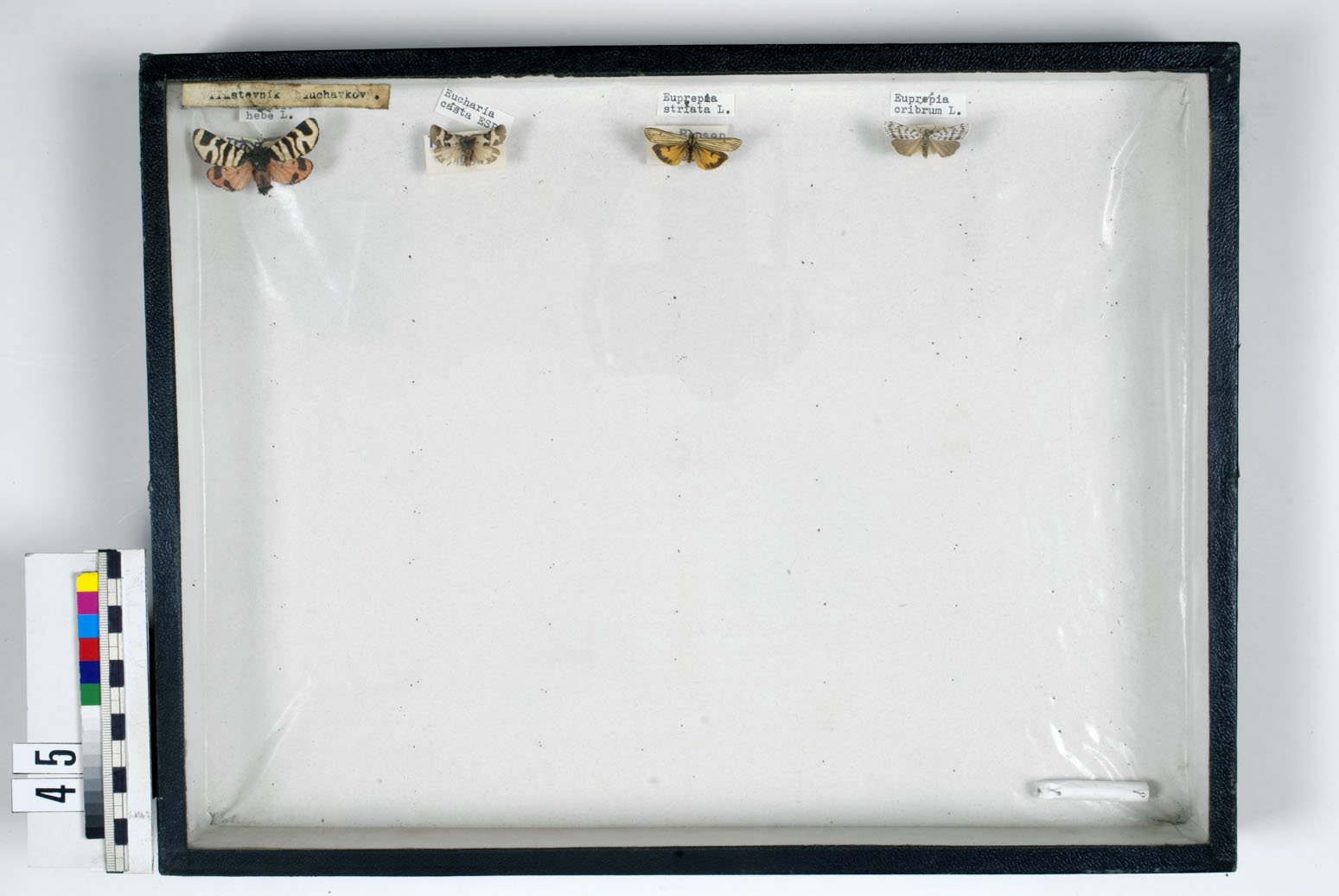 Krabice č. 37, kolekce muzea v Děčíně, Leptidera, Aphantopus hyperantthus, Erebia spec., Eumenis semele L. Krabice č. 22, kolekce muzea v Děčíně, Leptidera, Nymphalis antiopa, Vanesa cardui L. Krabice č. 12, Kolekce Muzea v Děčíně,Leptidera, Pieris napi L. Krabice č. 38, kolekce muzea v Děčíně, Leptidera,Hiparchia briseis, Lasiommata maera, Lopinga achine L. Krabice č. 23, kolekce muzea v Děčíně, Leptidera, Vanessa spec., Polygonia c. L. Krabice č.1 kolekce Muzeum Děčín Lepidoptera,  Papilio macheon L. ,  Iphiclides podalirius L.    Krabice č. 24, kolekce muzea v Děčíně, Leptidera, Limenitis spec. L. Krabice č. 25, kolekce muzea v Děčíně, Leptidera, Apatura spec L. Krabice č.2, kolekce Muzeum Děčín, Lepidoptera, Lepidoptera Parnasius apollo L. Krabice č. 26, kolekce muzea v Děčíně, Leptidera, Arachnia levana L. Krabice č. 42, kolekce muzea v Děčíně, Leptidera Cybesia mesomella, Eilema spec. L. Krabice č. 36, kolekce muzea v Děčíně, Leptidera, Melanagria galatea, Maniola jurtina L. Krabice č. 29, kolekce muzea v Děčíně, Leptidera, Polyematus spec.L. Krabice č. 28, kolekce muzea v Děčíně, Leptidera,Eucnedonia chiron ROOT, Cupide argiades PALL, Plebejus aerygyronomen BERG, Vacciniina optilete L. Krabice č. 3, kolekce Muzeum Děčín, Leptidera,Leptidea sinapis L., Pontia daplidice L. Krabice č. 4, kolekce Muzeum Děčín, Leptidera, Gonepteryx rhamni L Krabice č. 5, Kolekce Muzea v Děčíně,Leptidera, Collias spec. Krabice č. 6, Kolekce Muzea v Děčíně,Leptidera,Colias spec. Krabice č.11, Kolekce Muzea v Děčíně,Leptidera, Pieris napi, Aporia crategi L. Krabice č. 7, Kolekce Muzea v Děčíně,Leptidera, Anthocharis cardamines L Krabice č. 8, Kolekce Muzea v Děčíně,Leptidera, Pieris rapae L Krabice č. 9, Kolekce Muzea v Děčíně,Leptidera, Pieris brassicae L. Krabice č. 10, Kolekce Muzea v Děčíně,Leptidera, Pieris napi L Krabice č. 30, kolekce muzea v Děčíně, Leptidera, Polyomnatus spec. L. Krabice č. 13, kolekce muzea v Děčíně, Leptidera, Erynnis tages, Pyrgus malvae L. Krabice č. 31, kolekce muzea v Děčíně, Leptidera, Maculinea spec. L. Krabice č. 14, kolekce muzea v Děčíně, Leptidera, Carteocephalus spec., Adopaea spec. L. Krabice č. 15, kolekce muzea v Děčíně, Leptidera, Hesperia comma, Ochlodes venatum BR L. Krabice č. 16, kolekce muzea v Děčíně, Leptidera, Meliteea spec.  L. Krabice č. 32, kolekce muzea v Děčíně, Leptidera, Meleager daphnis, Celastrina argiolus, Lyceana spec L. Krabice č. 17, kolekce muzea v Děčíně, Leptidera, Melitaea spec., Clossiana spec. L. Krabice č. 18, kolekce muzea v Děčíně, Leptidera, Brenthis daphne Sch, Issoria lathonia  L. Krabice č. 19, kolekce muzea v Děčíně, Leptidera, Fabriciana aglaia, Argyronome paphia L. Krabice č. 20, kolekce muzea v Děčíně, Leptidera, Aglais urticae, Nymphalis spec. L. Krabice č. 21, kolekce muzea v Děčíně, Leptidera, Nymphalis polychloros L. Krabice č. 33, kolekce muzea v Děčíně, Leptidera,Lyceana spec.  L. Krabice č. 34, kolekce muzea v Děčíně, Thecla spec., Strymon spec, Hamearia lucina L. Krabice č. 35, kolekce muzea v Děčíně, Leptidera, Hamearia lucina L. Krabice č. 39, kolekce muzea v Děčíně,Leptidera, Satyrus dryas, Coenonympha arcania L.  Krabice č. 40, kolekce muzea v Děčíně,Leptidera Lasiomata megera, Parage aegeria L. Krabice č. 41, kolekce muzea v Děčíně, Leptidera Parasemia plantaginis, Euplagia quadripunctaria, Hypocrita jacobaea, Lithosia quadra, Setina irrorela L. Krabice č. 43, kolekce muzea v Děčíně, Leptidera Epicalia villica,Hyphoraia aulica, Cycnia mendica, Phragmatobia fuligiosa L. Krabice č. 45, kolekce muzea v Děčíně, Leptidera,Amnobiota hebe, Eucharia castas, Euprepia spec. L. Krabice č. 44, kolekce muzea v Děčíně, Leptidera, Arctia caja, Diacriasia vulpinaria, Panaxia dominula L. Krabice č. 46, kolekce muzea v Děčíně, Leptidera Zygaena spec. L. Krabice č. 47a, kolekce muzea v Děčíně, Leptidera Cochlidion limacodes HUFN. L. Krabice č. 47, kolekce muzea v Děčíně, Leptidera  Zyganea spec., Proctris statices L. Krabice č. 41, kolekce muzea v Děčíně, Leptidera, Sesia apiformus,Aegeria tipuliformis CL.,Sciapteron tabaniforme ROTT, Bembecia hyaeiformis, Trochilium spec.  L. Krabice č. 48, kolekce muzea v Děčíně, Leptidera, Amata phegea L, Dysauxes ancillia L. Krabice č. 50, kolekce muzea v Děčíně, Leptidera  Hepialus, humuli, Korcheltellus lupulinus L. Pohled do skříní vtunelovém depozitáři na uložení entomologického materiálu Pohled do tunelového depozitáře na skříně s uloženým entomologickým materiálem