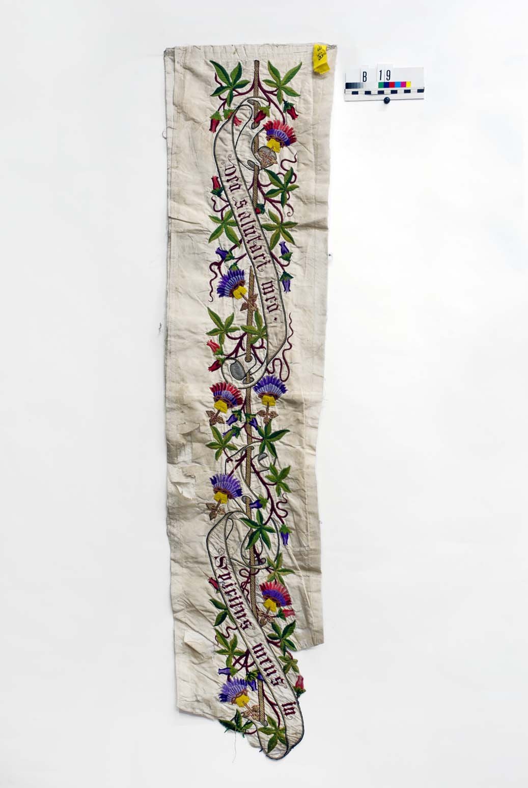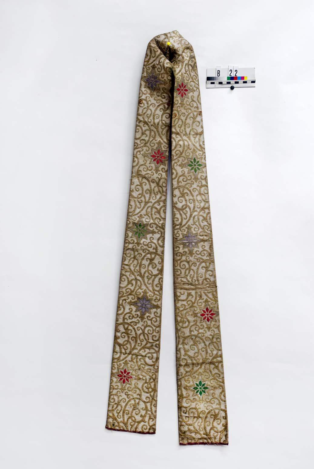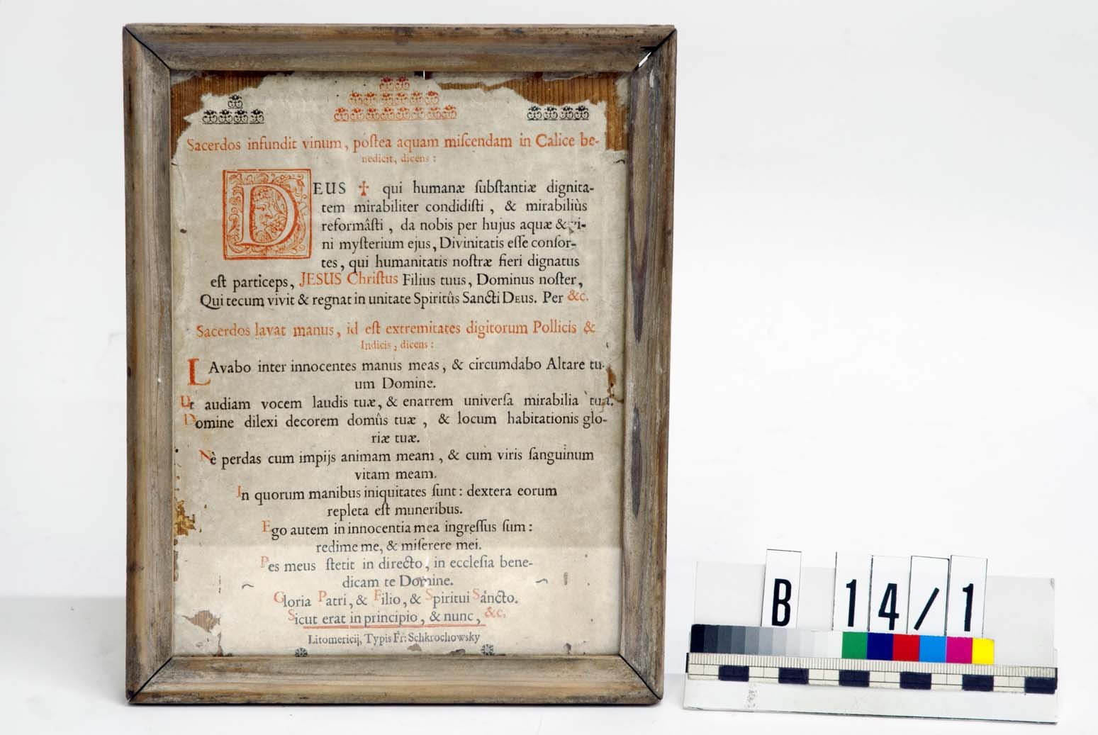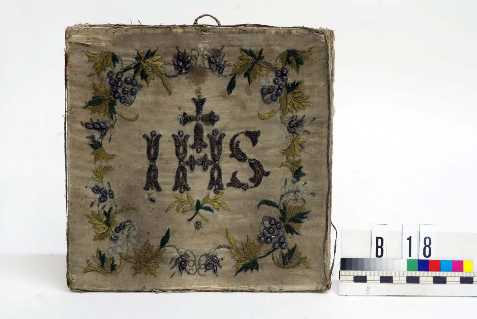 Relikviář, štítový, dřevěný, zelený, barokní. Sign. na nálepce: Relikviář monstrancový, mosaz,  konec 18. století,  Kadidelnice, mosazná, v 37cm, pravoslavné náboženství, 19.století Relikviář monstrancový, tepaná mosaz, částečně zlacená, 29, 5cm, 3. čtvrtina 18. století Navikula, barokní, tepaná stříbřená mosaz, 18,5cm, pol. 18. století Navikula, tepaná mosaz, v17,6cm, 2. polovina 18.století Věčné světlo, mosazný plech, strojově spracované, v39cm, 2.plovina 19. století Mešní zvonek, bílý kov, v 9,8cm, profilované držátko, 19. století Měšec k vybírání peněz, opatřený zvonkem, torzo, obecný kov, poč.20. století Relikviář,tepaná mosaz a stříbro, rozměr 15 x 12,5 cm, 2.polovina 18. století Burza k zaopatření, sign. J.I., vyšívaný bílý hedvábný ryps, 19,6 x19,6cm, 2.pol. 19. století Mešní tabulka, na papíru tištěné obvyklé mešní texty, tištěné v Litoměřicích v roce 1726. 21,4 x 17,8cm Mešní tabulka, na papíru tištěné obvyklé mešní texty, tištěné v Litoměřicích v roce 1726. 21,4 x 17,8cm Štola, hedvábná bílá s brokátovými konci, 2. pol. 19. stol.,sign. F 136 Kasulke, hedvábná bílá, bohatě vyšívaná m 1,10 x 94,5cm, 19.století Pás vyšívaný korálky, na jednom konci kování ve čeledína pečujícího o koně, druhý konec zakončen hřebenem, 117 x 10,3cm   konec 19. století Pás k sakristijnímu zvonku vyšívaný, kování ve tvaru ptáčka v keři, 140 x 9cm  asi kolem 1900 Pás vyšívaný, bez kování,  181 x 9,5cm  konec 19. století Výšivková výplň pravděpodobně z oltářního antipendia ( torzo )  113 x 25cm,kolemn roku 1900 Štola, bílá brokátová, sign. 135, látka řídce vyšívaná křížkovým vzorem, rozšířené konce štoly jsou z brokátu. konec 19. století Pás k sakristijnímu zvonku vyšívaný, kování ve tvaru poloviční rosety, 175 x 12,7cm  asi konec 19. století Pás vyšívaný korálky, kování ve tvaru lyry, na jednom konci mosazný kruh, 115 x 10,5 cm  asi konec 19. století Bílá brokátová štola, látka vyšívaná zlatými úponky a barevnými florálními motivy, stříbřitá obruba, podšívka červ ená, kolem roku 1900 Bílá štola, látka žlutě vyšívaná úponky, v rozšířené části motiv kříže, zakončeno dracounovými třásněmi barevnými florálními motivy, stříbřitá obruba, podšívka červ ená, kolem roku 1900 Fialová štola, látka vyšívaná zlatými a stříbřitými úponky. motivy, rozšířené konce zdobeny  stříbřitou portou, uprostřed motiv kříže, 2. pol. 19. století Palla,  černá sametová, lemovaná krajkou ze zlatého dracounu, konec 18 - 19. stol,  rozměr v137 x 137 mm, sign. F.W. 500 Pohled do tunelového depozitáře na uložení  sbírkových  předmětů Pohled do tunelového depozitáře na uložení  sbírkových  předmětů Pohled do tunelového depozitáře na uložení  sbírkových  předmětů