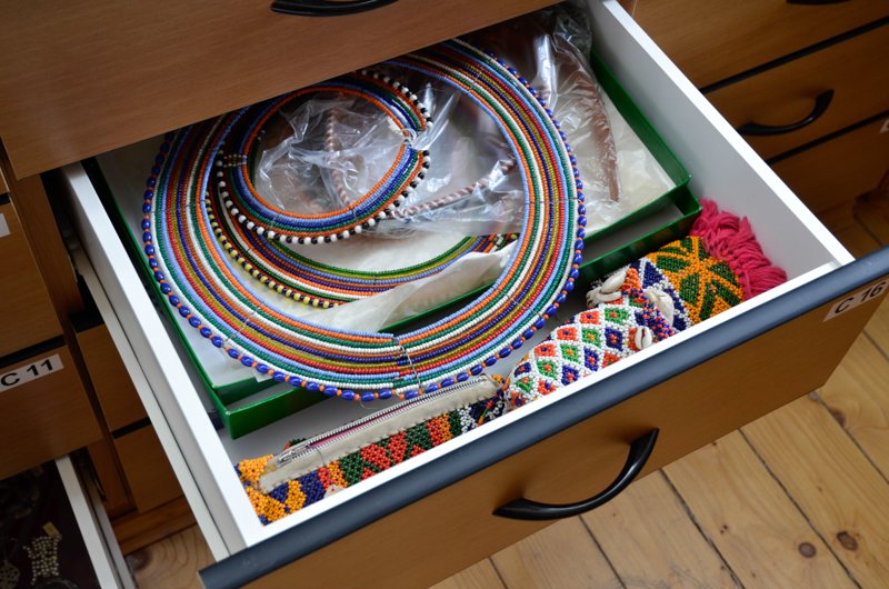 PředmětyPodsbírku tvoří bižuterie z různých materiálů ( skleněná, kovová, plasty, přírodní materiály ) , dekorativní předměty vyrobené různými etniky ( peněženky, boty, panenky ).