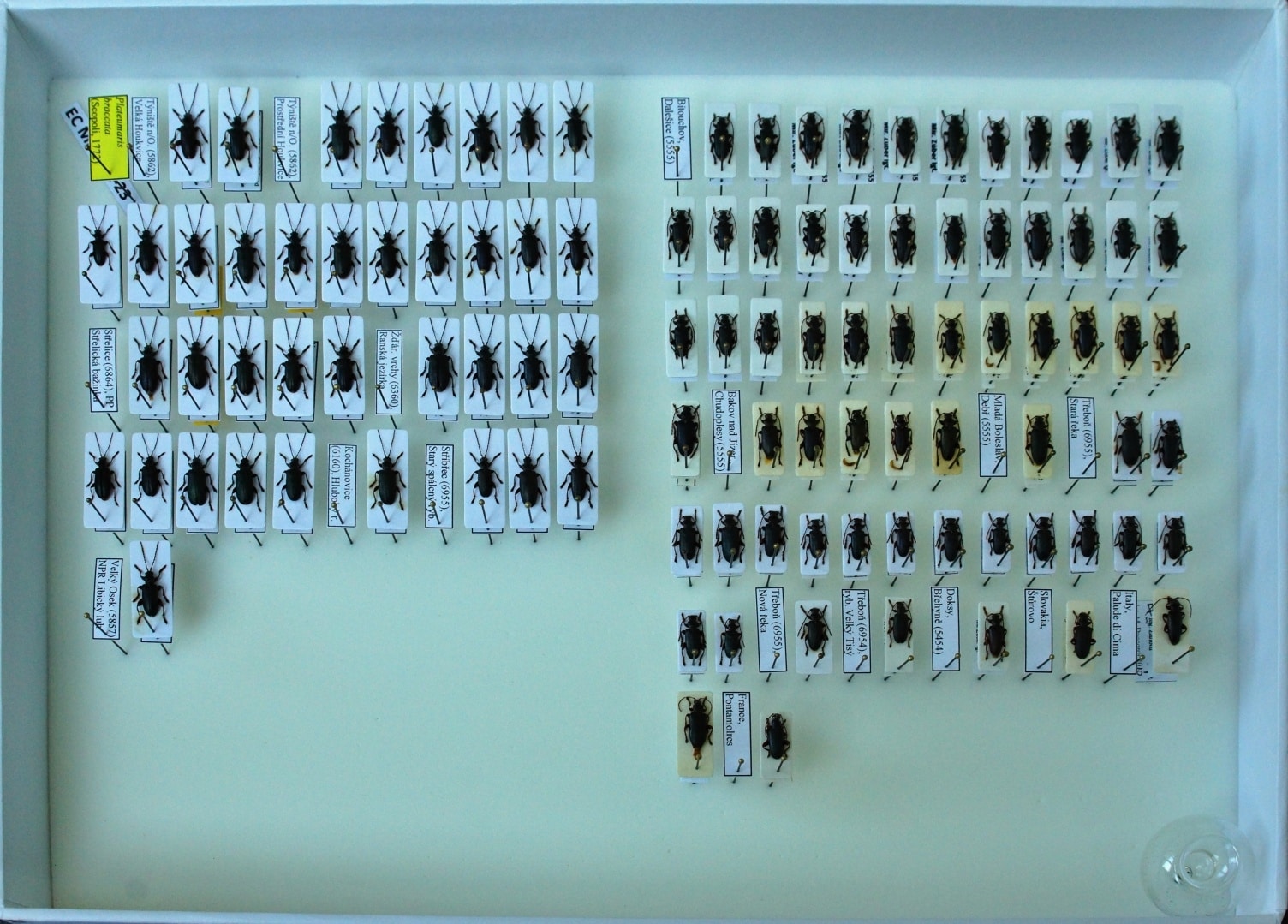 Roman Mlejnek coll., sbíráno na různých lokalitách v Čechách, také jsou zde exempláře z Itálie a Francie. V krabici je 103 ks, zbývajících 6 ks je v krabici č. 34.