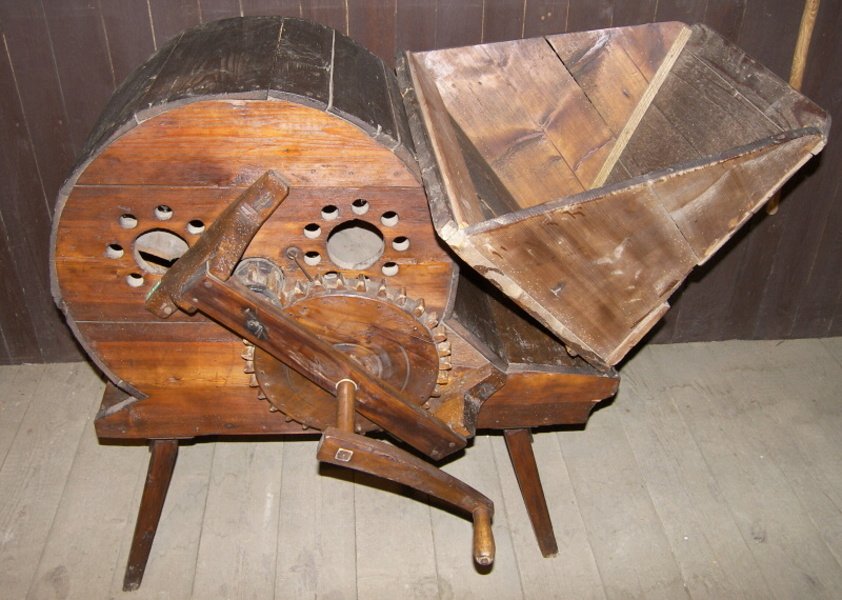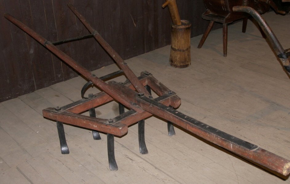 Depozitář uložení 02 Depozitář uložení 03 E 2803 Kramářská píseň Ziwotopis swaté Oliwi panny a mučednice pro wjru Pána Gežjsse Krista. Sepsal a vydal Josef Ter. Tiskem J.Zwikla v Mladé Boleslavi E 159 Skříň jednodvéřová z měkkého dřeva, s vyřezávanou římsou, na modrobílé půdě malovaná pole s květinovým dekorem, na dveřích žánrový výjev, Turnovsko zač.19.století E 197 Mísa s dvěm uchy, fajáns, malovaný dekor cechovní znak řezníků, dat. 1877 E 450 Kanduš-živůtek z modrého sametu, vyšívaný zlatým dracounem, sukně z hedvábného brokátu, modrá s fialovým květinovým vzorem, Turnovsko 19.století E 1961 Figura z betléma zhotovená ze dřeva s barevnou polychromií, ruční práce řezbáře Ignatze Partsche 1811-1866, severovýchodní Čechy pol. 19.století E 2722 Kramářská píseň Pjseň k cti P. Marii. Tiskem v Mladé Boleslavi E 3294-6 Svatý obrázek P. Marie Staroboleslavská Palladium země české, text M. Bolelslavská, barevný tisk s bohatým zlatým okrajem, 19.století E 3295-1 Měsíční obrázek s rytinou svaté Anežky Německo pol. 19.století E 3295-121 Rytina a námětem sv.Lukáš maluje P. Marii, zn. J.A.Hellich inv. et pinx C. Weisner sc., mědirytina dle Hellichova oltáře v Týnském chrámě, 19.století E 3351 Forma na pečení-beránek, dvoudílná, kamenina, vně režný povrch, uvnitř glazovaná, severovýchodní Čechy 19.století E 3565 Obracák oradlo se dvěma samostatnými radlicemi, upevněnými na zvláštní slupici nad sebou, dřevo, kov E 3765 Vyorávadlo brambor- zemědělský stroj s otočnou růžicí s vidličkami, tzv.čert, kov, poč.20.stol E 16 Džbán zhotovený technikou vytáčení na hrnčířském kruhu, kamenina, zdobená tzv. engobou, dekor rostlinný v barvě zelené a bílé na hnědé podkladové glazuře, Turnov 19.století E 189 Džbán kamenina, hnědá glazura, plastický dekor s bílou glazurou, hrdlo zpevněno drátováním, Čechy 19.století E 192 Truhla z měkkého dřeva, malovaná, na modré půdě rostlinný dekor soustředěný do tří kartuší, dat. Anno 1793, severovýchodní Čechy 18.století E 275 Dětský křestní čepeček z hedvábí podloženého plátnem, vyšívaný stříbrným dracounem, okraj lemován paličkovanou krajkou, Turnovsko 19.století E 482 Čepice od mužského kroje zhotovená z hnědého sametu s okolkem z beraní kožešiny, Turnovsko konec 19.století E 526 Vínek z pevného plátna, vyšívaný v červené půdě ornament provedený zlatou nití, Turnovsko 19.století E 529 Vínek, režné plátno, na okrajích a ve střední části bohatá výšivka rostlinného charakteru plochým oboustranným stehem v barvách červené, žluté a zelené, Turnovsko 19.století E 950 Čepec-zlatohlav se vsazeným dýnkem, lícní strana čepce pošitá zlatou krajkou se zlatou výšivkou doplněnou skleněnými kameny, vrapovaná krajka, Turnovsko 19.století E 1342 Prospěchy, dřevěné víceradličné oradlo ke kypření ornice, 4 radličky vzadu 3 radličky vpředu, dřevěné kleče E 1993 Figura z betléma zhotoveného z lepenky a papíru, ruční malba temperou, práce libereckého betlémáře Johanna Hanka-Hauka signováno, 1830-1850 z Hodkovic nad Mohelkou E 3294-34 Vyobrazení P. Marie Svatohorské (v pozadí), před ní Jezulátko, text P. Marie svatohorske, tisk Franz Schemm, Nürnberg E 3295-81 Reprodukce rytiny s postavou sv. Kosmy a Damiana, text Als woohlthätig gefinte Herzte spendeten...... Sign. Prag bai J.Pachmayer, pol 19.století E 3306 Svatá rodina z betlému v dřevěné kóji, figurky zhotovené z kašírované sádry, barevná polychromie, severní Čechy 19.století E 3442 Fofr-Trier k čištění obilí od plev, k třídění pročištěného osiva a tržního obilí, zn.Patent III E 3626 Voznice na močůvku, zhotovená z dřevěných dužin, stažených kovovými obručemi, válcovitého kónického tvaru, natřená zelenou barvou E 3630 Vůz na trávu. Konstrukční základ vozu tvoří předek a zadek s koly spojenými rozvorou, k němu se připojovala různá přistrojení, dřevo, kov, natřený zelenou barvou E 3813 Žebřiňák-čtyřkolový vůz ustrojený do žebřin používaný k přepravě sena a obilí, dřevo, kov, 19.stol E 4070 Džbánek na mléko s uchem, kamenina, bílá glazura, malba na glazuru zelený a hnědý proužek, výška 22 cm,  Turnovsko kolem 1850 E 4317 Trakař-dopravní prostředek  k přepravě nákladu na krátké vzdálenosti, žebřinová konstrukce, dřevěné kolo, zelenohnědý nátěr, dřevo, kov Depozitář uložení 04 Depozitář uložení 01 E 549 Stuha z bílého hedvábí, tištěný vzor-černé kostky, květinový dekor v barvě modré, červené a fialové, Turnovsko 19.století E 1038 Džbánek kamenina, vytáčený na hrnčířském kruhu, lesklá světle hnědá glazura, severovýchodní Čechy 19.století E 3140 Forma na pečení-bábovka, kamenina, hnědá glazura, východní Čechy 19.století E 51 Forma na pečení s jedním uchem,  bábovka, zhotovená z kameniny technikou vytáčení na hrnčířském kruhu, hnědá glazura, severovýchodní Čechy 19.století E 308 Výšivka z rohu sváteční zástěry z okolí Turnova, modré plátno a bavlněná příze, Turnovsko 1.čtvrtina 19.století E 408 Čepec od ženského kroje, dvoudílný z pevného plátna s uzlíčkovou výšivkou, přední okraj lemován krajkou, Turnovské konec 19.století E 1007 Svatební truhlička se dvěma zásuvkami, na modré půdě malovaný květinový dekor, ve středu christogram a datace 1797, Turnovsko 18.století E 1185 Model zemědělského stroje-rýlcové bezplazové oradlo se symetrickou lopatovitou radlicí  s krpadly a běhounkem, tzv. hák slezský E 1364 Secí stroj, patent Melichar, originální výsevní ústrojí umožňovalo výsev obilovin i drobných semen, kov, dřevo, přelom 19. a 20.století E 1991 Skupina darovníků-papírový kašírovan