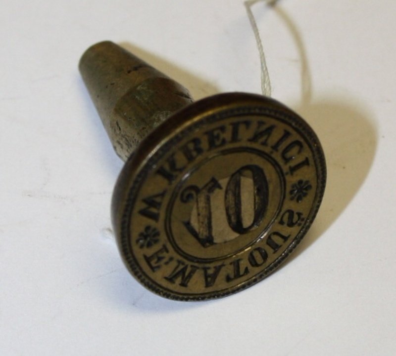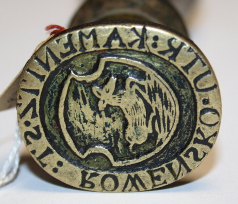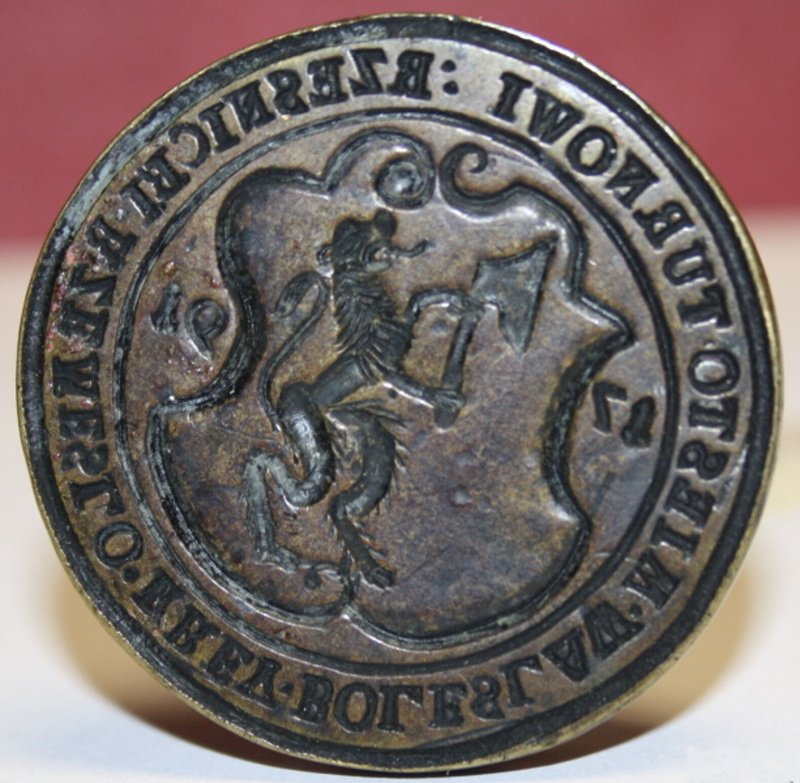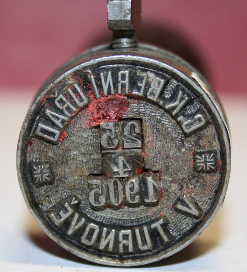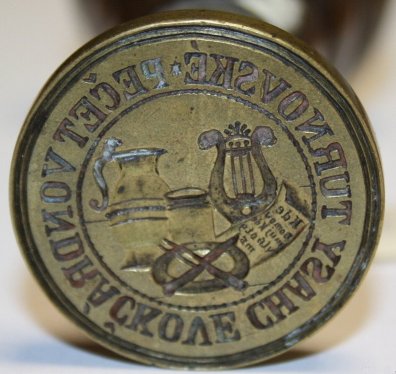Depozitář uložení 01 Depozitář uložení 02 Depozitář uložení 03 HS 2_pečetidlo_Kamenářské bratrstvo Rovensko pod Troskami_opis + P  K  P  B  STEIN MIESTA + ROWENSKA, mosaz, 1746 HS 8_det_pečetidlo_Vondráčkova chasa Turnov, opis PEČET VONDRÁČKOVE CHASY TURNOVSKÉ, písmo kapitála, mosaz HS 22_pečetidlo_Cech bečvářský, truhlářský a sklenářský Turnov, opis PECETRMESLABESVARSKEHOATRVHLARSKEHOASKLANARSK, písmo kapitála, mosaz, 1663 HS 31_pečetidlo_tiskaři Turnov, pečetní pole lemované perlovcem, v horní části nad sebou forma a kružidlo rozdělující letopočet, mosaz, dřevo, 1817 HS 47_razítko_Obecná a měšťanská škola Turnov, pečetní pole lemované linkou, korunovaný český lev, opis PEČEŤ ŠKOL TURNOVSKÝCH, písmo kapitála, mosaz, 19.stol HS 50_det_pečetidlo_Fráňa Matouš Kbelnice, opis F MATOUŠ W KBELNICI_napis 10,písmo kapitála, mosaz, kol.1848 HS 53_det_pečetidlo_město Turnov, opis SIGILVM CIVITATIS TVRNOVIENSIS, písmo kapitála, nápis 1636, mosaz, 1636 HS 70_det_pečetidlo_Berní úřad Turnov, opis C. K. BERNÍ ÚŘAD V TURNOVĚ, písmo kapitála, nápis 25 4 1905, mosaz, 1905 HS 70_pečetidlo_Berní úřad Turnov, pečetní pole ohraničeno vystouplou hranou a opisem, jemné rýhování, uvnitř nápis-datum rozdělené vodorovnou linkou, mosaz, dřevo, 1905 HS 75_razítko_Berní úřad Turnov, pečetní pole lemované linkou, v něm habsburský orel, po stranách orla hvězdičky, po obvodu pečetního pole nápis, mosaz, dřevo, 2.pol.19.stol HS 3_det_pečetidlo_Městský úřad Rovensko p.Troskami,opis ST ROWENSKO UTR KAMENITZ, písmo kapitála, mosaz, 17.-18.stol HS 3_pečetidlo_Městský úřad Rovensko p.Troskami, v pečetním poli barokní štít, v něm na půdě leží laň, mosaz, dřevo, 17.-18.stol HS 8_pečetidlo_Vondráčkova chasa Turnov, v pečetním poli lemovaném linkou korbel, lyra, pohár, talíř s vidličkou a nožem, rozvinutý svitek papíru s textem, dřevo, mosaz HS 14_pečetidlo_Cech řeznický v Turnově, opis RZESNICKI RZEMESLO KREY BOLESLAW MIESTO TURNOWI, písmo kapitála, mosaz, 1791 HS 15_pečetidlo_Cech ševcovský v Turnově, opis PECZET MIESTA TVRNOWA NAD GIZERV POCZTIWEHO RZEMESLA SSEWCZOWS, písmo kapitála, mosaz, 16.stol HS 25_det_pečetidlo_mlynářský cech Turnov, opis PECZET PoCTI CECHV MLINARZ WMIES TVRNOWIE NAD GIZEROU,písmo kapitála, bronz, 1717 HS 25_pečetidlo_mlynářský cech Turnov, v pečetním poli barokní štít, český lev, palečné kolo, andělé, hraběcí koruna, bronz, dřevo, 1717 HS 31_det_pečetidlo_tiskaři Turnov_opis ve vodorovných řádcích Gesamten Drucker und Formstecher in Turnau, písmo humanistická kurzíva, mosaz, 1817 HS 50_pečetidlo_Fráňa Matouš Kbelnice, pečetní pole lemované linkou, uvnitř číslice, vnější okraj tvoří bodovec s linkou na vnitřní straně, mosaz, kol.1848 HS 53_pečetidlo_město Turnov, v pečetním poli barokní štít nesoucí korunovaného českého lva, nad štítem letopočet, mosaz, 1636 HS 75_det_razítko_Berní úřad Turnov, opis C. K. BERNÍ ÚŘAD V TURNOVĚ K. K. STEUERAMT IN TURNAU, písmo kapitála, mosaz, 2.pol.19.stol HS 80_det_Razítko_Obecná škola Březová u Českého Dubu, opis OBECNÁ ŠKOLA U Č. DUBU, nápis VE BŘEZOVÉ, písmo kapitála, mosaz, 19.stol HS 80_Razítko_Obecná škola Březová u Českého Dubu, pečetní pole ohraničené linkou a opisem rozděleným dvěma křížky, nápis ohraničený oválnou linkou, mosaz, dřevo, 19.stol HS 108_det_pečetidlo_Cech hrnčířský Turnov, opis PEZET RZEMESLA HERNCZIRSKEHO MISTA, nápis TVR - NOW  1 - 6 -  4 - 5, písmo kapitála, 1645 HS 108_pečetidlo_Cech hrnčířský Turnov, pečetní pole lemované linkou, v kruhovém štítě jabloň, had, Adam a Eva, nahoře nápis a letopočet, 1645