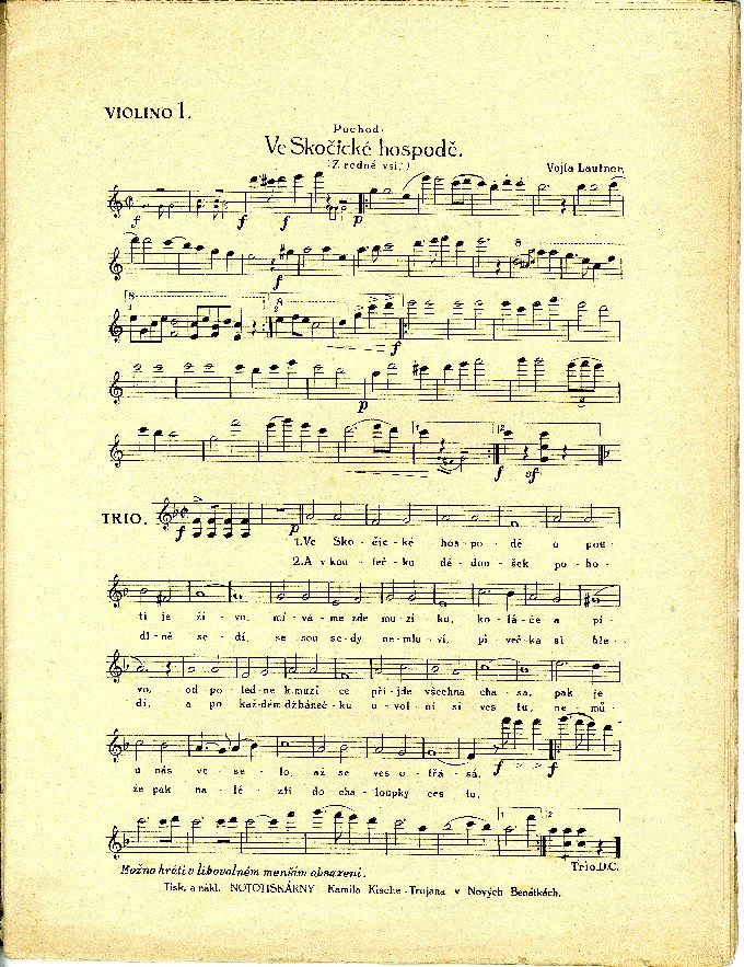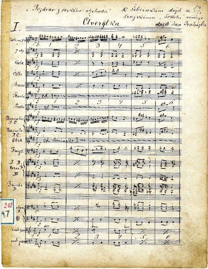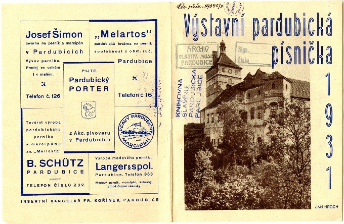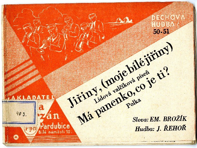 Vojta Lautner: Skočická polka, autograf, nástrojový part 1. houslí Stanislav Parýzek: Děvče z marcipánu. Pardubická polka, strana 1 Jan Procházka: Upomínka na jubilejní výstavy, 1891, strana 2 Em. Brožík, Jos. Řehoř: Jiřiny, moje bílé jiřiny. Má panenko, co je ti? vyd. Péťa Herzán, Pardubice Vojta Lautner: 2 pochody s textem, autograf, nástrojový part - 1. housle František Škroup: Dráteník, zpěvohra ve dvou dějstvích, tisk: Umělecká beseda Praha, 1926 Stanislav Parýzek: Děvče z marcipánu. Pardubická polka, titulní strana Vojtěch Lautner: Žalování, skladba pro klavír, autograf František Škroup: Dráteník, zpěvohra ve dvou dějstvích, tisk: Umělecká beseda Praha, 1926, portrét F. Škroupa František Škroup: Dráteník, zpěvohra ve dvou dějstvích, tisk: Umělecká beseda Praha, 1926, osoby a obsazení František Škroup: Dráteník, zpěvohra ve dvou dějstvích, tisk: Umělecká beseda Praha, 1926, předehra, 1. str. Em. Brožík, Jos. Řehoř: Když lípy květem voní. Valčíková píseň, vyd. Péťa Herzán, Pardubice Vojta Lautner: 2 pochody s textem, tisk: Nové Benátky, nástrojové party Jan Procházka: Pozdrav z českého východu - Čtverylka, autograf, str. 1 Jan Procházka: Pozdrav z českého východu - Čtverylka, autograf, str. 4 Čaj o páté, sbírka moderních chansonů a tanců pro klavír, vyd. Accord Praha, 20. léta 20. stol. Dominik Škroup: Concerto in B pro hornu a orchestr, autograf, sólový part horny Jan Hroch: Výstavní pardubická písnička, 1931 Dominik Škroup: Concerto in B pro hornu a orchestr, autograf, titulní strana Dominik Škroup: Concerto in B pro hornu a orchestr, autograf, part 1. fagotu Stanislav Parýzek: Děvče z marcipánu. Pardubická polka, strana 2 Jan Hroch: Výstavní pardubická písnička, 1931, obal Jan Procházka: Upomínka na jubilejní výstavy, 1891, strana 1 Jan Procházka: Upomínka na jubilejní výstavy, zadní strana František Škroup: Dráteník, zpěvohra ve dvou dějstvích, tisk: Umělecká beseda Praha, 1926, faksimile titulní strany Hymna Vojta Lautner: 2 pochody s textem, tisk: Nové Benátky, part 1. houslí Jan Procházka: Pozdrav z českého východu - Čtverylka, autograf, str. 2 Jan Procházka: Pozdrav z českého východu - Čtverylka, autograf, str. 3 Em. Brožík, Jos. Řehoř: Když lípy květem voní. Valčíková píseň, vyd. Péťa Herzán, Pardubice Depozitář - uložení sbírky hudebnin Depozitář - uložení sbírky hudebnin Depozitář sbírky hudebnin, pojezdové regály Dominik Škroup: Concerto in B pro hornu a orchestr, autograf, part 2. fagotu Jan Procházka: Upomínka na jubilejní výstavy, 1891, titulní strana PředmětySbírka obsahuje nábytek nejrůznějšího charakteru (sedací, úložný, servírovací, pracovní), části staveb (dveře, portály aj.).