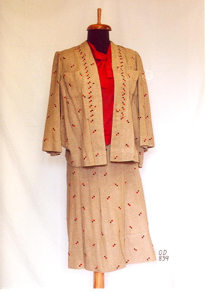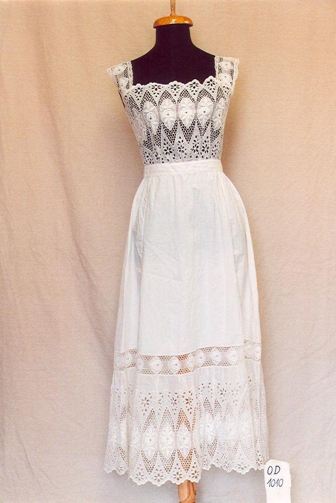 Šaty dámské, dvoudílné (živůtek, sukně), svatební, vlněná tkanina, hedvábí, strojově vyšívané apliky, 1907 Šaty dámské, společenské, monofil, 1958               Kabát pánský, lovecký, vlněná tkanina, kožešina, kožešník Březina, Kutná Hora, 1932 – 1933 Sbírka 0dívání a doplňky je uložena v depozitáři textilu. Krabička od pudru, papír, 1946 Šaty dámské, letní, hedvábný krepdešín, konec 20. let 20. stol. Křestní souprava  - košilka, kabátek, čepeček, 2 ks, silk, opál, síťovaná krajka, třetina 20. stol. Krabice na klobouky, lepenka, nápis Madam Tombo, 30. léta 20. stol. Cylindr, černý hedvábný plyš, J. Dvořáček, výrobce klobouků,Pardubice, 40. léta 20. stol. Pláštěnka dámská na večerní šaty, hedvábí a prýmky, konec 19. stol. Taneční pořádek v podobě lesního rohu, papír, kov,  MARIABRUNN, 1863 Kabela dámská, plážová, bavlněné froté, imitace želvoviny, 30. léta 20. stol. TORPEDO, nafukovací plovací polštářek, impregnované plátno, 3. třetina 20. stol. Kabelka dámská, společenská, gobelínová výšivka, rám slonová kost, konec 19. stol. Kombiné dámské, bílé plátno, strojová výšivka, počátek 20. stol. Kuchařka závěsná, lněné plátno, výšivka, 1. třetina 20. stol. Šaty dámské reformní, etamín, tyl, krajka s kovovým vláknem, po roce 1910 Bryndáček, bavlněný kepr, ruční výšivka, 1. polovina 20. stol. Kostýmové šaty dámské (šaty, bolerko), letní, bavlněná tkanina, 50. léta 20. stol. Šaty dámské, letní, směsová tkanina (vlna, hedvábí), kolem poloviny 60. let 20. stol. Oblek pánský (čamara, kalhoty, vesta), svatební, vlněné sukno, 1907 Kabelka dámská,  hadinka, ševro kůže, kov, 30. léta 20. stol. Šaty dívčí, společenské, hedvábný krepdešín, 30. léta 20. stol. Oblek pánský (kalhoty, sako, vesta), vlněná tkanina s vytkaným proužkem, krejčovská firma Žemlička, Skřivánek, Pardubice, 30. léta 20. stol. Šaty dámské, hedvábný mušelín, 30. léta 20. stol. Šaty dámské, hedvábí, připínací rukávy, 40. léta 19. stol. Vějíř papírový, reklamní, Východočeská výstava v Pardubicích 1903, 1903 Šaty dámské, vlněná tkanina, spodní vyšívané rukávy a límec z plátna, 50. léta 19. stol. Šaty dámské, hedvábný trikotýn, konec 30. let 20. stol. Střevíce dámské, společenské, kůže, textil, konec 20. let 20. stol. Šaty dámské, trojdílné (živůtek, sukně, pelerína), hedvábný ryps, 70. léta 19. stol. Šaty dámské, šedobílá vlněná tkanina, lemy z modrého hedvábí, 70. léta 19. stol. Plavky dámské, černý klot a červená potištěná bavlněná tkanina, 1925 Sandály dámské – dřeváky, kůže, dřevo, 2. světová válka Slunečník dámský, hedvábí, tisk rozmývaného květinového dekoru, počátek 20. stol. Pláštěnka dámská, hedvábí, strojová krajka, rokajová výšivka, konec 19. stol. Župan dámský, satén, krepdešín, 30. léta 20. stol. Kostým dámský (kabátek, sukně, halenka), buretové hedvábí, hedvábný krepdešín, konec 30. let 20. stol. Kombiné dámské, hedvábí, tyl, 30. léta 20. stol. Hůl vycházková s bodcem, dřevo, kov, konec 19. – 1. třetina 20. stol. Oblek dětský (halena, kalhoty), námořnický, bavlněný kepr, počátek 20. stol. Náhrdelník, sklo, 2. pol. 20. – 30. léta 20. stol. Šaty dívčí, hedvábný mušelín, ruční výšivka, kolem roku 1918 Klobouk dámský, kůže, hedvábný ryps, 10. léta 20. stol. Zástěra šatová, lněná tkanina, 1. třetina 20. stol. Klobouk dámský, slaměný, 2. polovina 20. let 20. století. Bolerko, bavlněná příze, irská háčkovaná krajka, 1. čtvrtina 20. stol. Kostým dámský (kabátek, sukně), bavlněný ryps, ruční a strojová výšivka, kolem roku 1910 Plesová toaleta, hedvábná tylová krajkovina, mušelín, rokajlová, flitrová a pajetková výšivka, model firmy Hansal, Vídeň, počátek 20. století Kostým dívčí (bunda, sukně), směsová tkanina, módní salon Eva, Smilova ul., Pardubice, 1971 Sbírka 0dívání a doplňky je uložena v depozitáři textilu. Sbírka 0dívání a doplňky je uložena v depozitáři textilu.