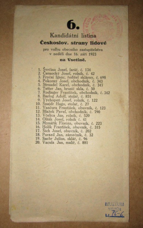 1. Sbírkalupa Sbírka Muzea regionu Valašsko, muzeum ve Vsetíně