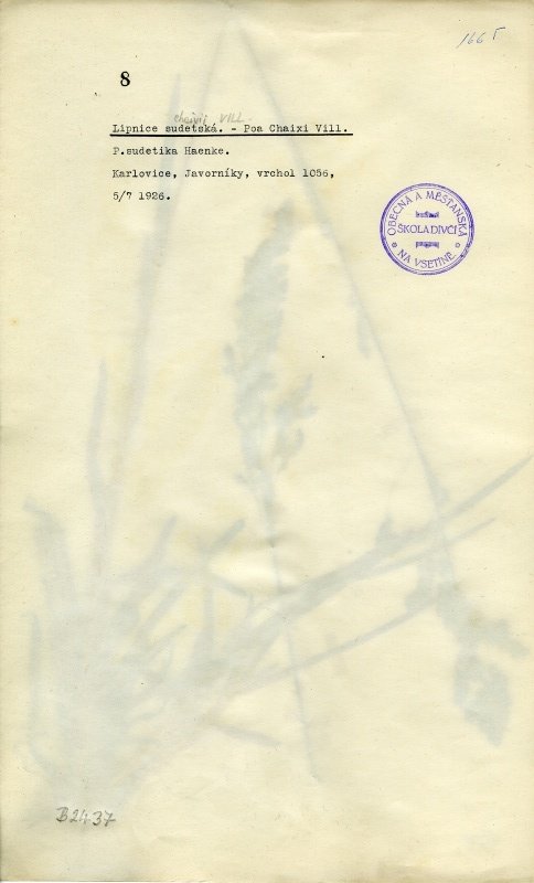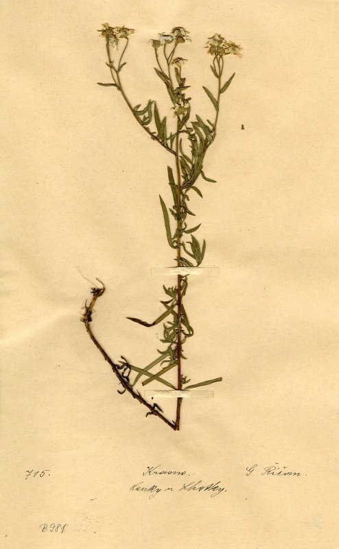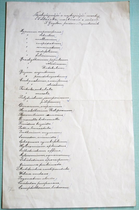 kopřiva žahavka (Urtica urens) - Gogelův herbář řebříček bertrám (Achillea ptarmica) - Říčanův herbář kroucenec šídlovitý (Tortula subulata) - Gogelův herbář chrpa luční (Centaurea jacea agg.) - Říčanův herbář růže galská (Rosa gallica) - Říčanův herbář růže galská (Rosa gallica) - Říčanův herbář růže šípková (Rosa canina) - Říčanův herbář růže polní (Rosa agrestis) - Říčanův herbář růže podhorská (Rosa dumalis) - Říčanův herbář řepíček řepíkovitý (Aremonia agrimonioides) - Říčanův herbář řepíček řepíkovitý (Aremonia agrimonioides) žebrovice různolistá (Blechnum spicant) - Říčanův herbář žebrovice různolistá (Blechnum spicant) - Říčanův herbář hadí jazyk obecný (Ophioglossum vulgatum) - Říčanův herbář hadí jazyk obecný (Ophioglossum vulgatum) - Říčanův herbář ostřice převislá (Carex pendula) - Říčanův herbář ostřice převislá (Carex pendula) - Říčanův herbář lipnice širolistá (Poa chaixii) - Říčanův herbář lipnice širolistá (Poa chaixii) - Říčanův herbář herbář botanika Františka Gogela (1854-1922) vstavač bledý (Orchis pallens) - Říčanův herbář plonitka horská (Oligotrichum hercynicum) subarkticko-subalpínský acidofilní mech  plonitka horská (Oligotrichum hercynicum) subarkticko-subalpínský acidofilní mech  dutohlávka třásnitá (Cladonia fimbriata) šikoušek bezlistý (Buxbaumia aphylla) šikoušek bezlistý (Buxbaumia aphylla) herbář cévnatých rostlin herbář cévnatých rostlin - detail uložení herbář mechorostů - uložení herbář Říčan - díl I. Dodatky k herbáři Gogelově herbář Říčan - díl II. Růže Seznam mechorostů - Gogelova sbírka pryšec drobný (Euphorbia exiqua) - Gogelův herbář kopřivovité (Urticaceae) - Gogelův herbář kopřiva žahavka (Urtica urens) - Gogelův herbář hvězdoš jarní (Callitriche palustris) - Gogelův herbář chrpa luční (Centaurea jacea agg.) - Říčanův herbář pcháč různolistý (Cirsium heterophyllum) - Říčanův herbář pcháč bezlodyžný (Cirsium acaule) - Říčanův herbář hořec křížatý (Gentiana cruciata) pérnatec horský (Lastrea limbosperma) - Říčanův herbář pérnatec horský (Lastrea limbosperma) - Říčanův herbář vstavač bledý (Orchis pallens) - Říčanův herbář dutohlávka třásnitá (Cladonia fimbriata) herbář mechorostů - detail uložení herbář Říčan - zhotovený pro výuku ve školách Gogelova sbírka mechorostů Gogelova sbírka mechorostů kerblík lesklý (Anthriscus nitida) kerblík lesklý (Anthriscus nitida)