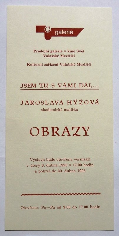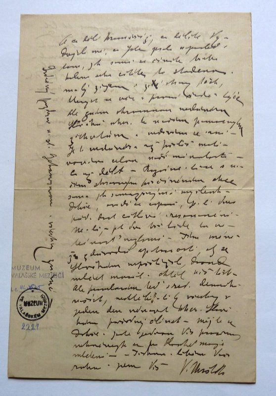 Programové prohlášení účastníků konference kulturních pracovníků vsetínského okresu, 1970 plakát na 3. abonentní koncert Musica cameralis Legitimace č. 975 Údu dědictví sv. Cyrila a Methoda Nákres zříceniny hradu Šaumburku irkulář o obnovení předpisu o jistotném čištění komínů Dopis Viléma Mrštíka, formátu A4 Kresby pečetí obcí regionu Valašské Meziříčí Rukopis básně Bartoše Vlčka Písemná pozůstalost spisovatelky Amálie Kutinové Vkladní knížka pro Kontribučenskou záložnu 8 listů rukopisů MUDr. Kraicze Kolorovaný půdorys hradu Rožnova Nákres Cestovní pas na jméno Johann Zbrunek Provolání Předplatní lístek na holení a stříhání Smlouva trhová mezi manžely Kubešovými a Bajarovými ze Mčenovic Pozvánka akad. mal. Josef Hapka Pozvánka na výstavu M.Borovičky a J. Vahalíkové Tiskoviny - písemný materiál Společnosti přátel žehu Val.Meziříčí Čestné uznání Československé strany lidové pozvánka na ples požárníků dne 23.ledna 1960 Metodické listy Hvězdárny ve Valašském Meziříčí Zpravodaj, Hvězdárna Valašské Meziříčí, září 1984 Náborový výtisk Osvětlovacího skla ve Val. Meziříčí, Katalog kompletních svíditel 1984 - 1985, koncernového podniku SKLO UNION Katalog Katalog výrobků k.p. TESLA Valašské Meziříčí Propagační materiál k.p. TESLA Valašské Meziříčí Propagační materiál podniku TESLA Valašské Meziříčí Propagační tisk Osvětlovacího skla n.p. Val. Meziříč Propagační tisk n.p. Val. Meziříčí Papír dopisní, firemní - ÚČET, firmy Janyška a spol. Mapa XXXIV. ročníku mezinárodní šestidenní soutěže na motocyklech Alba na pohlednice, prázdná Volební leták Písemnosti a tisky - uložení Písemnosti a tisky - uložení Písemnosti a tisky - uložení Dopis Bedřicha hraběte Seilerna Rodní a křestní list Rosálie Bajerové, nar. 2.března 1854 Úřední listina z r. 1837 Pozvánky a plakáty na akce pořádané Kulturním zařízením Val.Meziříčí Pozvánky na koncerty a výstavy pořádané kulturním zařízením Val.Meziříčí v r. 1991 Památník s autogramy významných osobností Diplom Jiřině Janouškové Leták s nápisem Papír dopisní firemní, firmy E.a R.Vencl Kalendář mladých obránců vlasti 1938 Nálepka samolepící M-klubu Valašské Meziříčí Písemnosti týkající se činnosti Sokola Valašské Meziříčí Album propagační  -  firmy Radko Bok - keramika Pozvánka na oslavy 110. výročí založení sboru dobrovolných hasičů v Lešné Písemnosti a tisky - uložení