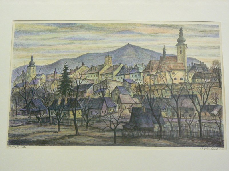 Faska na sýr, salašnická nádoba zhotovena z dřevěných dýh, konec 19. století, výška=40 cm, průměr =15-22 cm Tkalcovská cechovní truhlice z roku 1799, dřevo, kov, na čelní stěně reliéf - tkalcovský znak (tři člunky) a písmena WF (Weberei Frankstadt), 112 x 70 x 75 cm Hospodský vývěsní štít, autor Reimund Wichera, 2. polovina 19. století, dřevo, olej, 50 x 180 cm Vývěsní znak Pohorské jednoty Radhošť, první české turistické organizace založené v roce 1884 ve Frenštátě p. R., plech, email, 50 x 35 cm Svatý Jan Nepomucký, plastika, dřevo, polychromie, ze sbírky P. J. Slavíčka, výška=115 cm Cechovní postavník k ševcovské korouhvi z roku 1769 Cechovní pohár s víkem s postavou rytíře, cín, výška=36 cm Džbán, na příklopu beránek s korouhvičkou, cín, výška=32 cm Pieta, plastika z konce 16. století, dřevo, polychromie, výška=26,5 cm, šířka=16 cm Kropenka s reliéfem zobrazující  sv. Jana Nepomuckého, cín, výška=13 cm Kravské jařmo, zdobené vyřezávaným geometrickým ornamentem, dřevo, 85 x 54 cm Svatá Barbora, výklenková plastika, konec 19. století, dřevo, polychromie, laická práce, pochází ze sbírky P. J. Slavíčka, výška=38,5 cm Mocca souprava, majolika, znač. Nesselsdorf Kopřivnice, 1811–1883, výška konvičky=18 cm, výška hrníčku=6 cm Kresba ke knize Rok pod horami, tuš, volný list, 1954, autor Antonín Strnadel, 16,5 x 25 cm Křest Páně, sousoší, lipové dřevo s polychromií, barokní práce, výška Ježíše=26,5 cm, výška sv. Jana Křtitele=34,5 cm C. K. Poštovní a telegrafní úřad, vývěsní štít, kolem roku 1900, malba na plechu, 140 x 130 cm Váza s ozdobným okrajem, majolika, znač. Nesselsdorf, Kopřivnice, 1811–1883, výška=35 cm Husar na koni, střelecký terč z roku 1837, malba na dřevě, 157,5 x 82 cm Podkopčí, pětibarevná litografie, značeno, autorský tisk, 1970, volný list, autor Jan Hrnčárek, 376 x 631 mm (536 x 757 mm) Panna Maria Frýdecká s dítětem, dřevo, polychromie, unikátní lidová práce ze Pstruží z konce 18. století, výška=78,5 cm Svatý Jan Nepomucký, plastika, konec 19. století, lipové dřevo s polychromií, výška=72 cm Na salaši, kresba tuší, volný list, kolem roku 1940, autor Antonín Strnadel, 11 x 18,5 cm Tancovačka - Muzikanti, soubor figurek na podložce, autor Antonín Tlašek, lipové dřevo, výška=5-7 cm Deska na mandlování z roku 1816, s vyrytými ornamenty, dřevo, 52 x 15 cm Znak města Frenštátu pod Radhoštěm – patron sv. Martin, dřevo, malba olejovými barvami, 83 x 65 cm Panoráma Pusteven s útulnami, olej na lepence a plátně, ve vyřezávaném malovaném rámu, 147 x 183 cm Prospekt k malovanému lidovému betlému na lepence z roku 1882, autor Jan Bačák, 80 x 45 cm Klobouk člena spolku vojenských vysloužilců korunního prince Rudolfa, zdobený peřím, kolem roku 1890, výška=20 cm Anděl, současná lidová plastika, autor Antonín Tlašek, lipové dřevo, výška=26 cm Šátek z bílého bavlněného plátna, zdobený bílou výšivkou, 1. polovina 19. století, 125 x 129 cm Rozhledna Metodějka na Okrúhlém, černobílá fotografie na kartonu, přelom 19. a 20. století, 17 x 12 cm Cechovní konvice, cín, výška=25 cm Ježíš Kristus Bolestný, současná lidová plastika, autor Antonín Tlašek, lipové dřevo, výška=22 cm Ovčák s ovečkou, betlémová figurka z betlému Antonína Mechla, Frenštát p. R., kolem roku 1904, malba temperou na lepence, výška=11 cm Podříčí, autor Adolf Kobliha, obraz, olej na lepence, 1. polovina 20. století, v rámu, 73 x 43 cm Síťovaný ženský čepec se sedmi vyšívanými zoubky, konec 19. století, součást lidového kroje Talíř s jednohlavým orlem, zdobený rytím, značený, cín, průměr=55 cm Depozitář podsbírky muzea Frenštát pod Radhoštěm Depozitář podsbírky muzea Frenštát pod Radhoštěm Sokol v slavnostním kroji, střelecký terč z roku 1893, malba na dřevě, 79 x 71 cm Výstavba škola na Kopané v roce 1908, černobílá fotografie na kartonu, 17 x 12 cm Pár punčoch, bílé, bavlněné, ručně pletené s monogramem A. K., součást lidového kroje Bůh Apollón, střelecký terč z roku 1849, malba na dřevě, 191,5 x 93 cm Svatební věneček Veroniky Holubové-Fojtíkové  (1877-1965) z Lichnova, textilní a papírové květiny, drát, průměr=20 cm Valašská kapela, svařovaná kovová plastika, autor František Rajnoch, výška figur= 9-11 cm Jánošík na koni Tátoši, autor Antonín Strnadel, akvarel a barevné tužky, studie k fresce v hotelu Vlčina, v rámu, 45 x 60 cm Dáma v nosítkách, porcelán, výška=25 cm Turecký sultán s žezlem, střelecký terč z roku 1846, malba na dřevě, 192 x 116,5 cm Sekretář na šroubovitých nohách z roku 1677, dřevo, kování, z pozůstalosti P. J. Slavíčka, 60 x 145 x 48 cm Německý císař (asi Karel Veliký), střelecký terč z roku 1848, malba na dřevě, 187 x 99 cm Krucifix s Pannou Marií a Maří Magdalénou, polychromované lipové dřevo, výška=48 cm Svatý Florián, výklenková plastika, konec 19. století, dřevo s polychromií, laická práce, výška=37,5 cm Depozitář podsbírky muzea Frenštát pod Radhoštěm