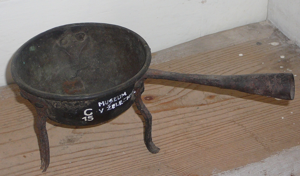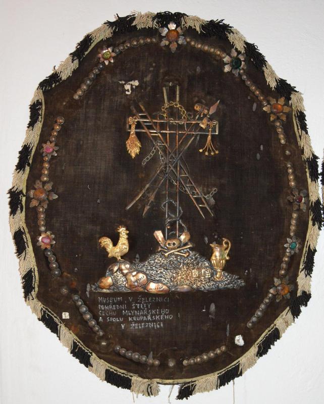 Kulisy,dřevěný divadelní nábytek,dvě židle,vyrobil Věncesla Černý.  Loutka černokněžníka,hlava sádrová malovaná,ruce,nohy,tělo dřevěné,v.47 cm,vyrobil Věnceslav Černý.  Malá loutka čaroděje, v.28,5 cm, vyrobil Věncesla Černý,1.čtvrtina 20.století.  Malá loutka písaře,hlava a dolní část noho jsou sádrové,ruce,horní část nohou a tělo jsou dřevěné,oblečení původní. Malá loutka písaře,hlava a dolní část noho jsou sádrové,ruce,horní část nohou a tělo jsou dřevěné,v.28 cm. Malá loutka vojáka,hlava a spodní část nohou sádrové,ruce,horní část nohou a tělo jsou dřevěné,vyrobil Věnceslav Černý.  Měděný kotlík cechu mlynářského na tavení pečetního vosku, v.11,5 cm,p.15,5 cm.  Obraz s věncem ,který byl přivezen v r.1866 po bitvě u Zámezí na hrob padlého pruského důstojníka jeho snoubenkou.  Pohřební obraz malovaný na plátně, sv.Vojtěch cechu sedmeráckého ze Železnice,59 x 44,5 cm.  Pohřební obraz malovaný na plátně,sv.Václav cechu sedmeráckého ze Železnice,oválný tvar 59 x 44,5 cm.  Pokladnice cechu mlynářského a krupařského ze Železnice z roku 1783, muzeu daroval Emil Vondrák.  Prapor vojenských vysloužilců ze Železnice z roku 1875.  Praporec cechu ševcovského ze Železnice,uprostřed znak dvou patronů cechu a znak ševců. Praporec cechu tkalcovského a mezulánického,uprostřed se znakem patrona a 3člunků,vrch praporce zdoben tepanými lístky.  Schránka na pečeť cechu krejčovského ze Železnice. Muzeu daroval v roce 1917 Josef Stránský ze Železnice Tepaný pohřební obraz,zdobený polodrahokamy a skly,závěs na rakev cechu mlynářského,muzeu daroval poslední cechmistr.  Truhla z 1.sv.války.  Vojenská pokladna z napoleonských válek.