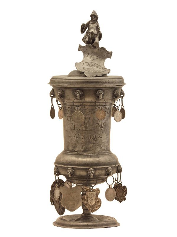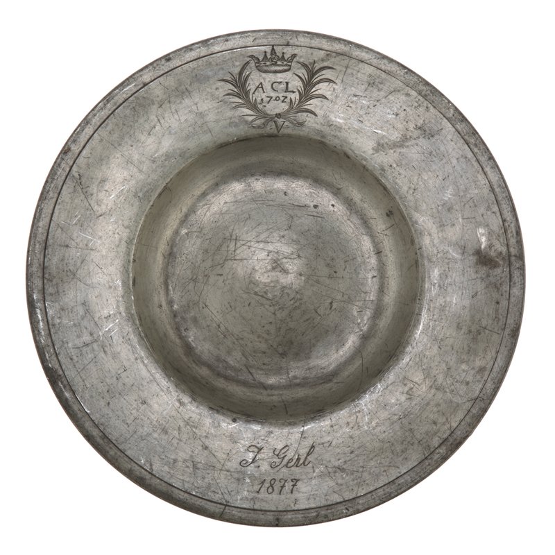 Uložení v depozitáři Uložení v depozitáři Kruhová mísa, 18. století, cín Talíř, kolem roku 1900, cín Podnos, kolem roku 1900, cín Konev s víkem, 2. polovina 15. století, cín, Olomouc Josef Neidhart, miska, 19. století, cín Talíř s reliéfem dívčí hlavy, kolem roku 1900, cín Mísa, kolem roku 1900, cín Talíř, 2. pol. 17. století, cín, Brno Talíř, kolem roku 1900, cín Cechovní nádoba, 1700, cín, Olomouc Josef Neidhart, koflík, 19. století, cín Podnos, kolem roku 1900, cín Svícen, 1. pol. 19. století, cín, Olomouc Talíř, 1726, cín, střední Evropa Konvice s víkem, 1734, cín, Olomouc Cechovní konvice, 1725, cín, Olomouc Uvítací pohár, 18. století, cín, Olomouc Láhev se šroubovací zátkou, 1729, cín, Olomouc Konev s víkem, cín, 16. století, Olomouc Konvice s víkem, 1716, cín, Olomouc Uvítací pohár, 1700, cín, mosaz, Olomouc Lavabo, 1859, cín, Olomouc Talíř, cín, 2. pol. 17. století, Brno Michael Freytag, kruhová mísa typ kardinálský klobouk, přelom 17. a 18. století, cín Mísa, kolem roku 1900, cín Uvítací cechovní pohár, konec 17. století, cín, Olomouc Plastika ženy s nádobou a dvěma putti, kolem roku 1900, cín Talíř s reliéfem dívčí hlavy z profilu, kolem roku 1900, cín A. Köhler, rámeček, kolem roku 1900, cín Uložení v depozitáři