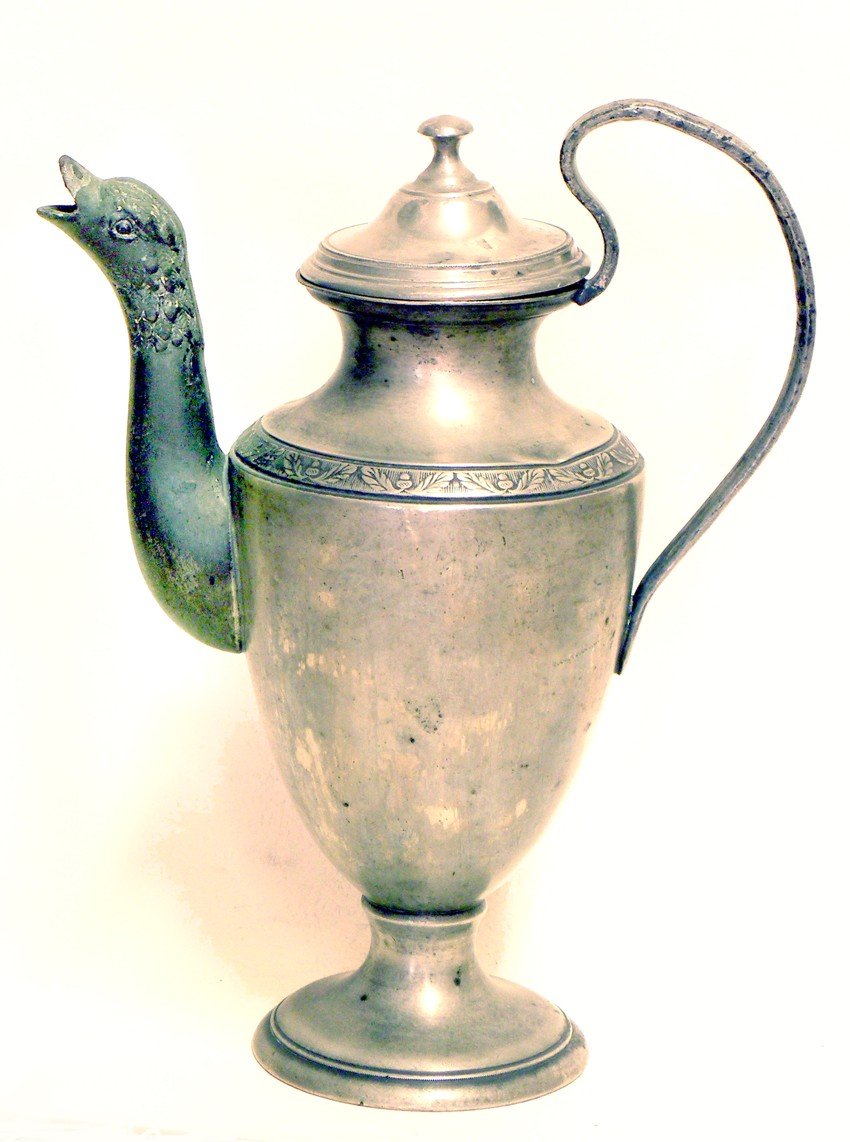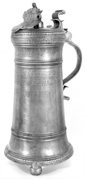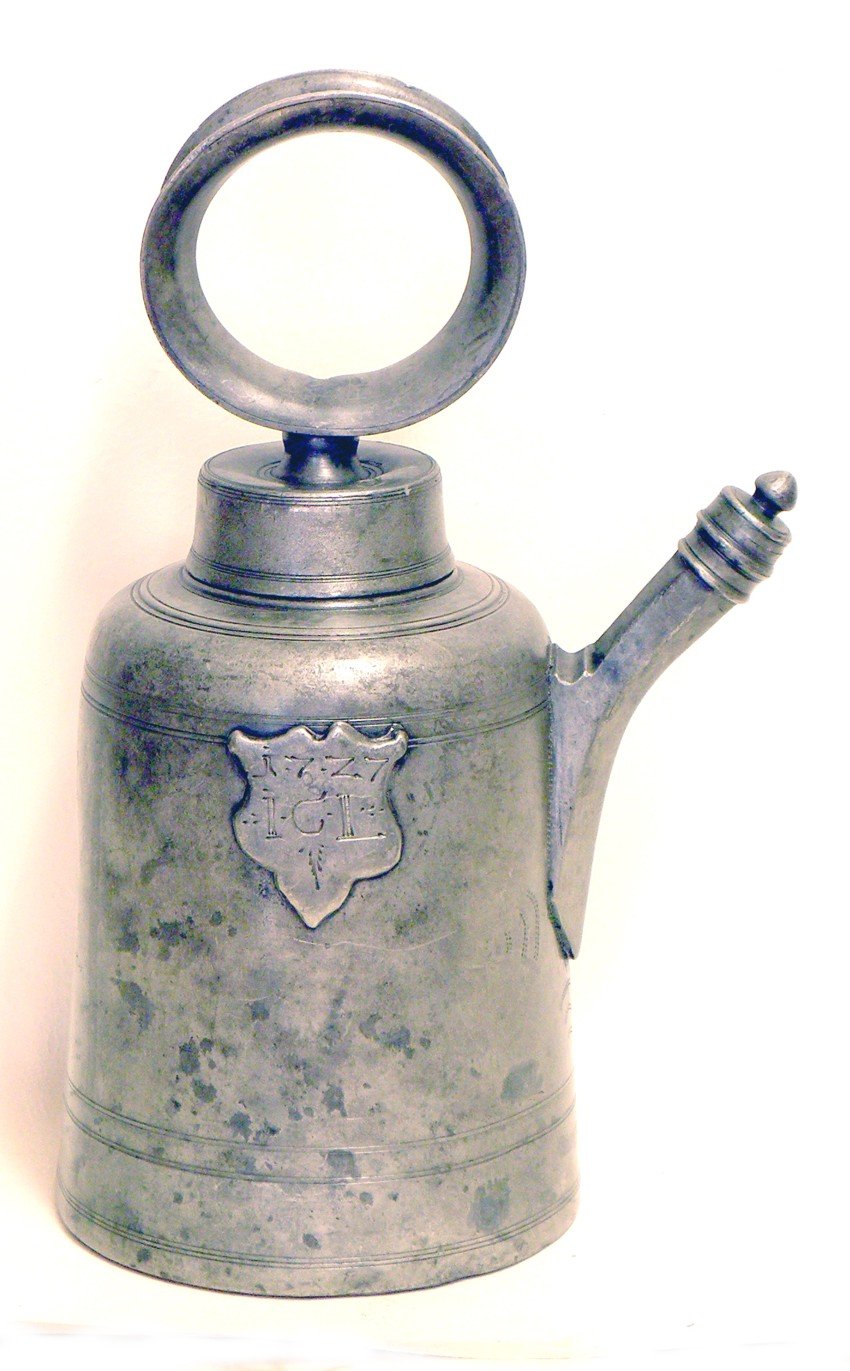 Cínová soška horníka na koni, autor neznámý, 19. století (C 400) Sederová mísa, cín, Severozápadní Čechy, 2. polovina 18. století (C 400) Cínová konvice, Josef Drumm, Karlovy Vary, konec 19. století (C 14) Cínová konvice, autor neznámý, Slavkov, konec 19. století (C 37) Nízká cínová dóza s oddělitelným víčkem, Švédsko, počátek 20. století (C 501) Cínová válcovitá odměrka – vídeňský máz, na plášti je nápis: Wienner Maas 1756 (C 785) Závěsné věčné světlo, cín, neznámý autor, 18. století (C 648) Stolní kalamář oválného tvaru, autor neznámý, konec 19. století (C 799) Cínová konvice, autor neznámý, značeno dvěmi značkami v podobě erbů a dvojnásobné růže v kruzích, Zürich, Švýcarsko, 1727 (C 8) Cínový džbán, na druhé straně víčka dvě stejné protilehlé značky jelena s nápisem Joseph Eiben a spodní značkou sv. Jana Křtitele s nápisem Teplitz, 1800 (C 12) Cínový džbán, autor neznámý, značeno DROB ZIN FR, na víku jsou vyryté iniciály A. M., Praha - Slavkov, 1. čtvrtina 19. století (C 54) Cínový talíř, autor neznámý, počátek 19. století, na dně talíře je reliéfní podobizna prince Evžena Savojského, dole s nápisem Prinz Eugen (C 250) Cínová kropenka, nad kalíškem je stáčený štítek s postavou sv. Jana Nepomuckého, Horní Slavkov, konec 19. století (C 291) Cínová mísa, do dna je vtlačen heraldický znak Chebu – v horní polovině orlice, v dolní čtvercová pole nakoso, 1732 (C 319) Cínový talíř, autor Anton Jeremiáš Götze I., děčínský cínařský mistr, Děčín, 1787 (C 539) Kostelní svícen, cín, autor Joseph Drumm II., karlovarský cínař, syn cínaře Johanna Michaela Drumma, Karlovy Vary, 1. čtvrtina 19. století (C 576) Bohatě zdobený barokní svícen z farního kostela v Krupce, autor Anton Bartel starší, českolipský cínařský mistr, Česká Lípa - Krupka, 30. léta 18. století (C 741) Secesní mělká cínová mísa mušlovitého tvaru, zdobena dívčí hlavou s rozevlátými vlasy a květinami, autor neznámý, počátek 20. století (C 795) Hluboká cínová mísa, Značeno částečně nečitelnou značkou ...TENN BB G.A.R. SWEDEN, Švédsko, 19. století (C 856) Válcovitá odměrka s uchem, zdobená rytými prstenci, pod horním okrajem dva cejchy s orlicí a letopočty, značeno na dně: A. Rimella Feinzinn Teplitz, 2. polovina 19. století (C 885) Cínová konvice kolářského a podkovářského cechu z r. 1607, vyr. v Chomutově (C 63)   Cínová konvička, Karlovy Vary, polovina 18. století (C 46) Cínová konvice k lavabu, střední Evropa, kol. r. 1800 (C 120) Cínová dózička ve tvaru labutě, vyr. fi. Aug. Weygang, Öhringen, Německo, 1. třetina 19. stol. (C 371) Cínová konvice, patrně Švýcarsko, konec 19. století (C 5) Depozitář cínu (2014) Regály v depozitáři cínu Police v depozitáři cínu