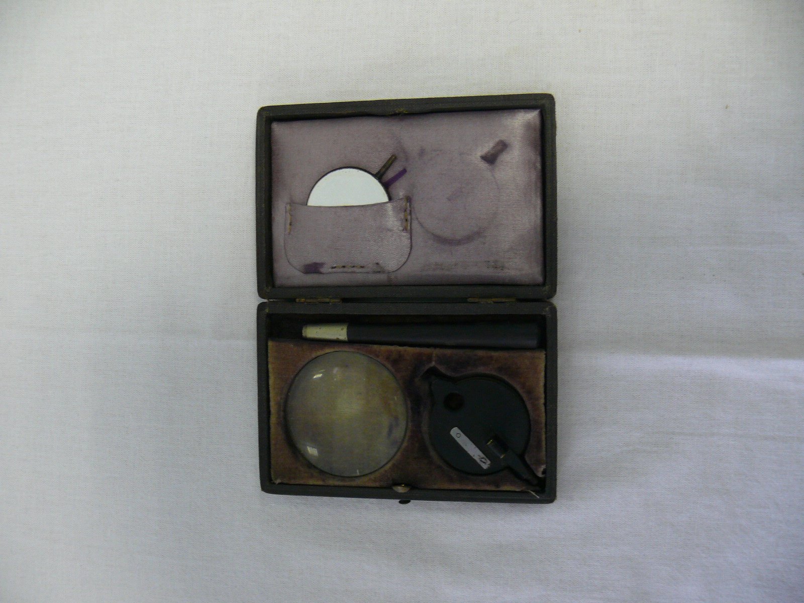 L 46 - Přístroj Triumph, elektronické zařízení v černém kufříku. 20. léta 20. století. L 1 - Oftalmoskop, oční zrcátko, lékařský nástroj používaný k vyšetření vnitřních struktur oka. L 5 - Rektoskop, přístroj pro vyšetřování řitního otvoru. Vyrobeno v NDR. 20. století. L 19 - Schwartzova vana, kovová vana se zařízením na přívod a odtok teplé vody se dřevěnou podlážkou. Františkovy Lázně. 19. století. L 29 - Rehabilitační točna, využívána při rehabilitačním tělocviku pro kardiaky. 20. století. L 42 - Chirurgická pilka, pilka na řezání kostí s ozdobnou matkou. 20. století. L 45 - Rentgenový přístroj, pravděpodobně nejstarší dochovaný rentgen podle Ottova slovníku. Přelom století (kolem 1895 - 1905). L 73 - Ophtalmoskop, přístroj na vyšetření očí. Polovina 20. století. L 38 - Chirurgické nůžky, na přikládání vaty při operačních zákrocích. Přelom 19. a 20. století. L 64 - Lékárenská lžíce. Františkovy Lázně. Počátek 20. století. L 62 - Gynekologické kleště. Františkovy Lázně. 20. století. L 65 - Inhalační přístroj - Radiosan. Západní Čechy. 30. léta 20. století. L 67 - Neceser s toaletními potřebami, cestovní, kožený. Uvnitř kartáče na vlasy a šaty, pouzdra na pudr a zásyp, kryt na zubní kartáček apod. Západní Čechy. 1. polovina 20. století. L 74 - Mikrofon na záchyt srdečních tepů, HM 612. Vyrobeno v NDR. 1979. L 85 - Léčebný roh, přikládal se na postižená místa (záda a rovné plochy těla). Západní Čechy - Mariánské Lázně. 18. - 19. století. L 87 - Brýle, na zakrytí očí před L 115 - Karlovarská sůl. Mariánské Lázně - Karlovy Vary - Františkovy Lázně. První republika. Uložení sbírkových předmětů - Balneologie, lázeňství (depozitář Seeberg) Uložení sbírkových předmětů - Balneologie, lázeňství (depozitář Seeberg) Uložení sbírkových předmětů - Balneologie, lázeňství (depozitář Seeberg) L 2 - Mikroskop, binokulární, používaný v laboratoři St. lázní. 20. století. L 66 - Masážní strojek - Elektroller. Západní Čechy. 30. léta 20. století. L 137 - Tlakoměr, na štítku: Erkameter - Germany - standard original. 20. léta 20. století. L 16 - Mikroskop, z majetku Dr. Palliardi. Františkovy Lázně. 19. století. L 14 - Osobní váha, váha má váhovou stupnici do 125 kg a vyklápěcí zrcadlovou desku, pomocí které se čte váha, proto jsou číslice i text psány zrcadlově. Františkovy Lázně. 19. století. L 10 - Pažení na jímání pramene - Chebské kyselky = Františkovy pramene z jednoho kusu dřeva (jedle), dlabaný, v horní části vydlabaný otvor na odtok vody. Františkovy Lázně. 1640. L 81 - Lékárenská baňka, pocínovaná. Západní Čechy - Kynžvart. Konec 19. století. L 9 - Rehabilitační kolo - Velotrab, cvičné kolo na pevném podstavci s posuvnou sedačkou simulující jízdu na koni. Přelom 19. a 20. století. Františkovy Lázně.