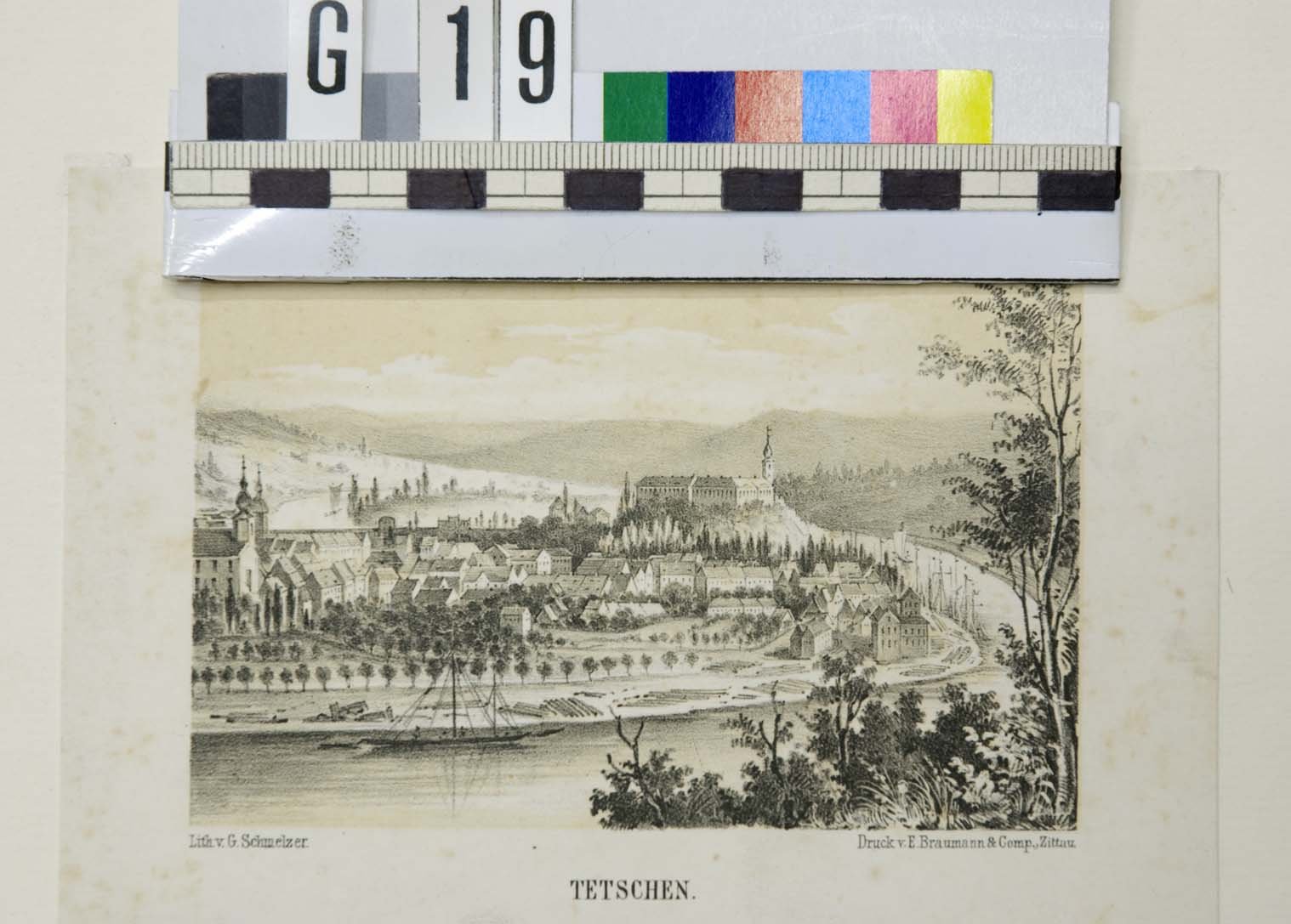 PředmětyV grafické sbírce jsou uloženy návrhy na siderolitové výrobky firmy Schiller a syn, veduty Děčína, Českého a Saského Švýcarska.