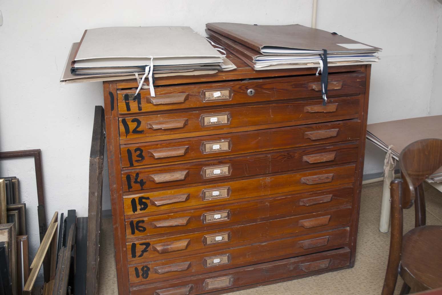 G 66 – pohled na děčínský zámek. Kresba perem, 288mm x 210mm. Podepsáno v levém dolním rohu : Jos. Stegl, Děčín. Dole na paspartě věnování. Žabí pohled na zámek od západu. G 376 – Zřícenina Sperlingsteinu , Josef Stegl, linoryt. 147mm x 99mm G 2328 - Plakát čokoládoven Hartwig und Vogel. Litografie, torzo reklamního plakátu mnichovských čokoládoven Hartwig a Vogel, založených r. 1893. G 262 – Litografie, křídová kresba 53 x42,8cm, podle kresby J.H. Bethkeho křídovou kresbu zhotovil litograf Fr. Hanfstaengl, tisk tiskárna v Mnichově. Vydáno pro členy jednoty  krasoumné na rok 1860 G 1942   V ateliéru sochaře leží na podložce modelem muž. Z podhledu je sledován umělcem, který pořizuje skicu. Abrahamus Bloemser /?/ inventor – Fredericus Bloemser /t/ ? fecit et exc. PRIMA PARS. G 2488 - Franz I., posmrtné vyobrazení, zemřelého Franze I. (1768 - 1835), krále uprostřed vyobrazeny korunovační klenoty na polštáři se střapci. Dole text. G 2 – Děčín a Rybník v r. 1790. Kresba tuší, 120mm x 177 mm, signováno v pravém dolním rohu HR, podle Balzera. Pohled na zámek s přilehlou čtvrtí, v popředí muž s holí a žena. G 19 – Děčín. Dvoubarevná litografie, 71mm x 113mm, litograf : G. Schmelzer, tisk : E. Braumann a spol. Žitava. Celkový pohled na zámek s přilehlou částí města, v popředí koruny stromů. G 48 – Děčín. Dvoubarevná litografie, na obloze přidána irisem třetí barva, 310mm x 486mm, autor a litograf : Dörre, v levém dol. rohu v kresbě negativní značka.Pohled na pravý břehměsta G 55 a,b,c  Jihovýchodní pohled na řetězový most při zámku. Litografie, kresba křídou, 320mm x 425mm, kresba a litg. : K.F. Grünewald, tisk : Louis Lodlner, Drážďany, 1839.Pohled na řetězový most G 127 – Arnoltice, památník války. Kresba, 182mm x 147mm, autor : Ignaz Weigel, 1907. Pohled na památník. G 134 – Hraniční území u Hřenska v Čechách. Kolorovaná kamenorytina, 80mm x 124mm, litograf : C.A. Richter. Pohled na okolí Hřenska, v popředí dělníci otesávají kameny. Kolorováno umbrou a modří. G 160 – Pohled na labské údolí u Dolního Žlebu. Rytina, 85mm x 152mm, autor : C.F. Grünwald, rytec : C.H. Beichling. Pohled na krajinu s Lbem u Dolního Žlebu. Vpravo nahoře část kostelíka. G 1272  Děčín /Tetschen an der Elbe/. Pohled na zámek Děčín od jihu (bez mostu), vlevo část levého břehu.  Vpravo strom, pod ním plastika na podstavci. Zingg del. – J.A. Darnstadt fc.  G 1276 – Děčín /Tetschen in Böhmen/. Pohled z jihu na děčínský zámek, vlevo nábřeží pod Pastýřskou stěnou, vpravo vysoký strom, pod ním plastika MadonyG. Zingg /1734 – 1816/  G 1284  Projekt zámecké zahrady před přestavbou děčínského zámku v období třicetileté války. Nez. autor   Velikost listu 505 x 768, kresby 482 x 698mm. Stav : vlevo natržený okraj. G 1711 Josef Stegl Podmokly n. L. 1932. Pohled z cesty na Chlum na zátočinu Labe a Podmokly, v pozadí s masivem Děčínského Sněžníku. Barevná reprodukce obrazu, signovaného v levém dolním rohu G 1991 Večerní idyla pod Střekovem. Uprostřed řeka s veslicí, na níž se převáží muž hrající na harfu, sedící a stojící turista s tornou na zádech, mladý pár a děvčátko. Ludwig Richter 344 x 452mm,  G 2051 Ponocný, muž v dvoucípém klobouku s pérem, dlouhém kabátě, v napřažené ruce má vysokou hůl s kulovitým zakončením. komb. kresba perem, tuší a tužkou, nezn. aut., 20. stol., 192 x 78cm G 2327 –Tyršův most. Jemná litografie, kom křída a tuš. Velice přesná, až architekt. kresba Tyršova mostu z pohledu z levého břehu směrem na Německo. Na mostě panuje čilý ruch, tři drob litogr. G 2330  Stromy na hrázi. Skupina čtyř téměř holých stromů  na břehu řeky. Na proti jehličnatý les. Kresba dynamická, tvrdá, sloužící nejspíš jen jako skica. Kresba tužkou na žlutavém papíře, 1950n G 2331 - Horská lesní cesta.  V předním plánu vpravo vysoké rovné štíhlé stromy, taktéž vpravo. Za nimi cesta ústí do otevřeného prostoru rozeklané horské krajiny. Kresba povahy skic,. kolem 1950 G 2332 - Okraj lesa. pěšina (stanoviště aut.) vedoucí mezi polem a divoce rostoucím stromovým porostem. Vlevo pole  se vzrostlými klasy, vpravo rozličné keře, jemná kreslířská práce, kolem 1950 G 2489 - František Josef I., polopostava . Císař rakouský a král uherský a český František Josef I. (1830 - 1916) v uniformě se šerpou a mnoha státními vyznamenáními. U pasu vlevo šavle. Pohled do depozitáře Grafiky na uložení graf.listů Pohled na uložení grafických listů v depozitáři grafiky Pohled na skříň s uloženými grafickými listy G 2329 - Dialog s bohyní. Značně abstrahovaná figurální kompozice, svěží kresba barevnými tušemi perem a štětcem.