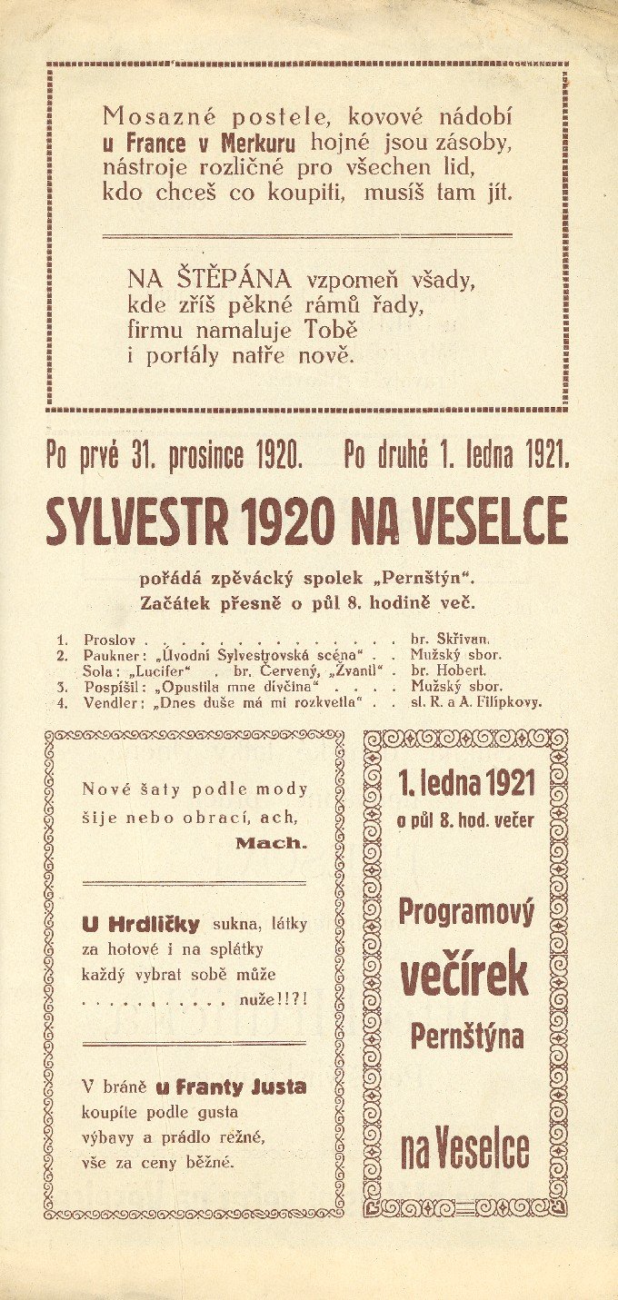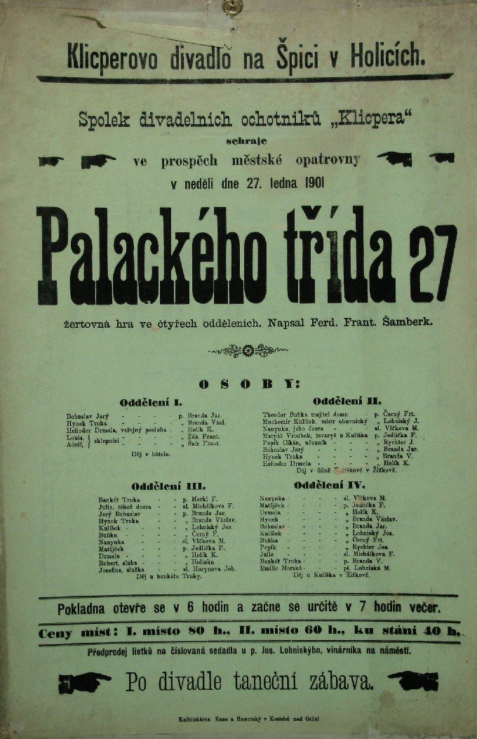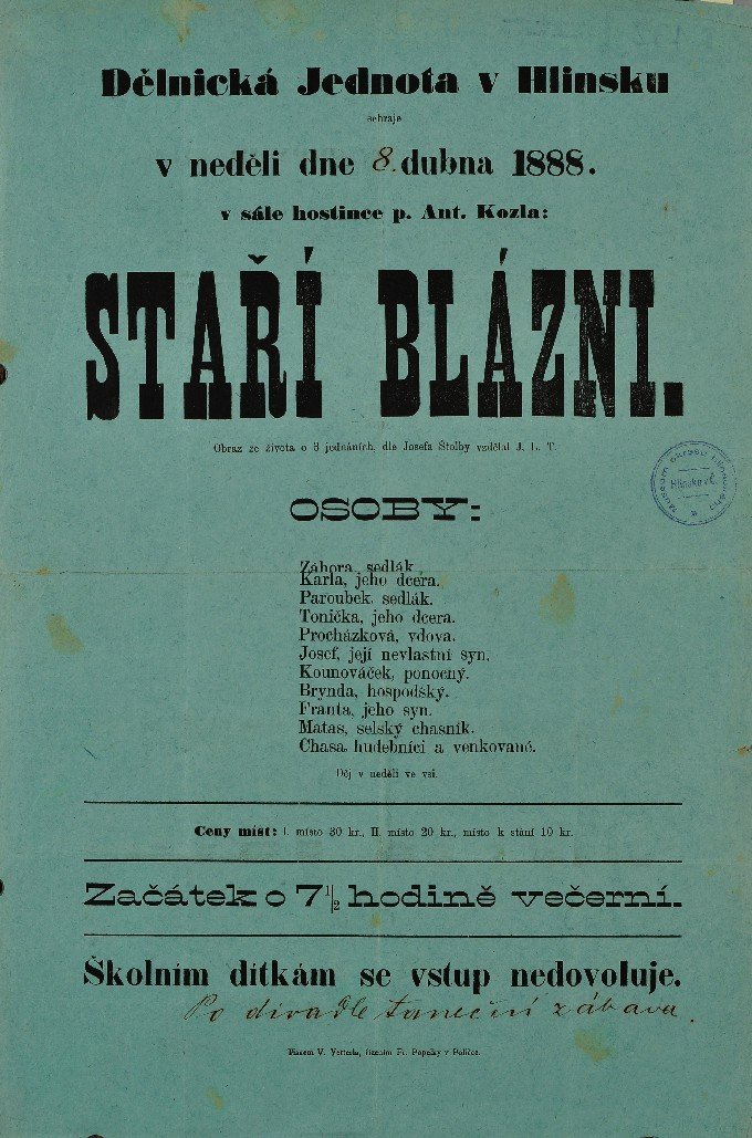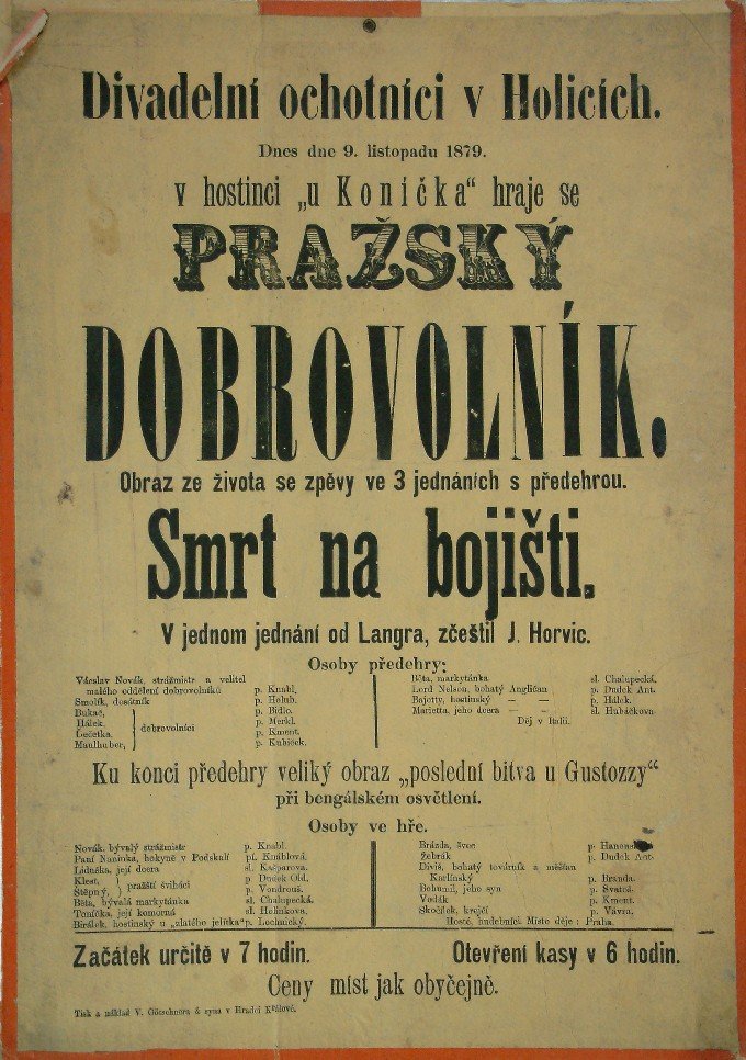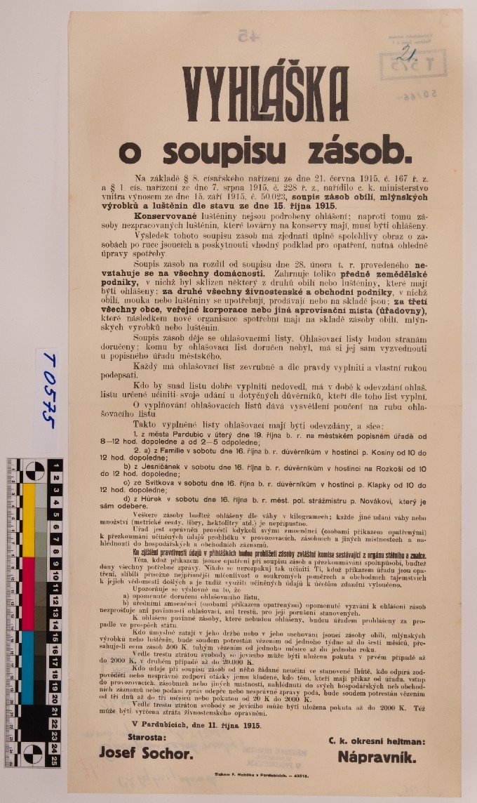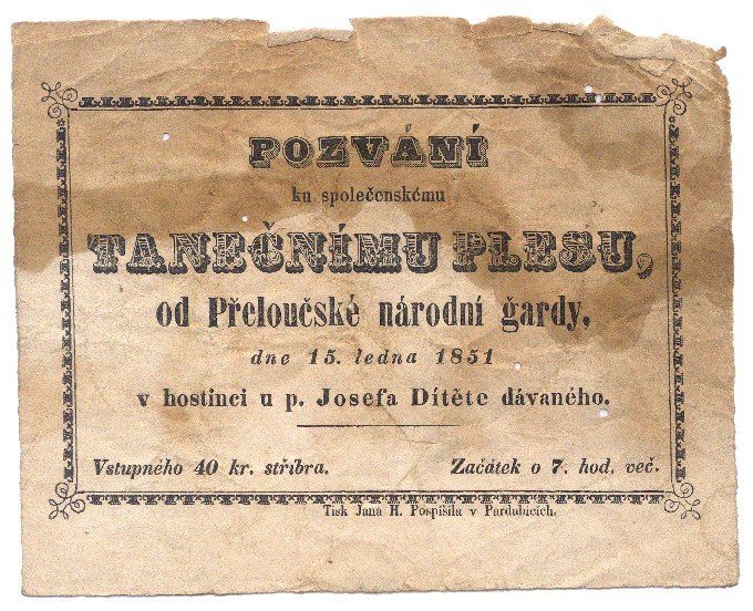 Nejstarší dochovaný plakát, který zve do expozic pardubického muzea na zámku pochází z roku 1898 a vytiskla ho tiskárna Františka Hoblíka. Vyhláška o stanovení maximálních cen pro máslo, tvaroh a vejce. Pardubice, 31.července 1916. Vyhláška o povinnosti zdravit říšské symboly z 27.listopadu 1939. Drancování se trestá smrtí. Tyto plakáty byly vyvěšovány v blízkosti objektů, poškozených nebo zničených bombardovánim Pardubic ve dnech 21.-22.července, 24.srpna a 28.prosince 1944. Oznámení o popravě Josefa Tacla a Zdeňka Tvrze z Pardubic. Plk.Josef Tacl byl krajským velitelem Obrany národa v Pardubicích, škpt. Zdeněk Tvrz byl jeho zástupce a náčelník štábu. Komunistický plakát z obecních voleb roku 1938. Plakát s protialkoholní tématikou z roku 1957. Nástěnné noviny Krajské poradny a studovny marxismu-leninismu v Pardubicích z března 1954. Vyhláška o soupisu zásob. Pardubice, 11.října 1915. Plakát Spolku divadelních ochotníků Klicpera v Holicích. Představení  Ohnivá země, 26. prosince 1911,  hostinec Na špici. Pardubické biografy Imperial, Lido, Národní dům, Sport. Program na 2.-8.února 1940. Propagační plakát k měnové reformě v roce 1953. Předvolební plakát Československé strany národně socialistické z roku 1946. Hra Staří blázni. Dává Dělnická jednota v Hlinsku 8.dubna 1888. Východočeské národní divadlo v Pardubicích, programový plakát od 31.ledna do 11.února 1941. Vyhláška pardubické obce o otevření městské kuchyně pro hromadné stravování nemajetných rodin. 26.října 1916. Plakát divadelních ochotníků v Holicích. Představení  Pražský dobrovolník. 9. listopadu 1879. Hostinec u Koníčka. Plakát divadelních ochotníků v Holicích (Klicperovi divadlo). Představení  České amazonky. 2.února 1889, hostinec Na špici. Plakát Spolku divadelních ochotníků Klicpera v Holicích. Představení  Palackého třída 27. 27. ledna 1901, hostinec Na špici. Akademický malíř Otakar Sedloň. Výstava v umělecké síni Městského průmyslového muzea v Pardubicích. 1.-22.června 1930. Plakát Spolku divadelních ochotníků v Pardubicích na představení Libušin hněv. Městské divadlo Pardubice, 19.října 1940. Nařízení říšského protektora Konstantina von Neuratha o držení zbraní v Protektorátu Čechy a Morava. Poukázka na příděl chleba pro nezaměstnané, Pardubice, rok 1936 Oznámení o zřízení městského muzea v Pardubicích z 8.března 1881 Pozvánka na ples Národní gardy v Přelouči. 15. ledna 1851. Trestní výměr o udělení pokuty za neúčast ve volbách do poslanecké sněmovny roku 1920. Řád hašení ohně v Pardubicích z roku 1793. Reklamní letáček parfumerie Jan Ponc v Pardubicích. Mezi světovými válkami. Dámy, které tančí, nesmí odmítnout tanec příslušníkům německé branné říšské moci, resp. Německého národa. Program oslav stého výročí vynálezu ruchadla bratranců Veverků v Pardubicích a Rybitví 14. a 15. srpna 1927. Reklamní leták na film Ulička v ráji v hlavní roli s Hugo Haasem. Rok 1936. Prospekt plynové masky Chema. Československo, 2. polovina 30. let 20. století. Pozvánka na všestudentský společenský večer Sportovního klubu Studentská XI v Pardubicích. 22. ledna 1921. Místní sdružení republikánského dorostu ve Velinách, divadelní představení Na rodné hroudě, 22. března 1936. Výzva Ing. Josefa Vencla k ženám v Pardubicích, aby volily Republikánskou stranu zemědělského lidu. 9. června 1938. Pozvání na silvestrovské oslavy v hotelu Veselka v Pardubicích v roce 1920. Reklamní leták na rozhlasový přijímač model 446001 z firmy Telegrafia Pardubice. Mezi lety 1924-1925. Pozvánka na vepřové hody v plzeňské restauraci U Rulů v Pardubicích, 10. října 1931. Reklamní leták ve formě dopisu od firmy Karel Miška, továrna na papír, kartonážnické zboží…Hostinné. Březen 1937. Plakátek, zvoucí na divadelní představení Já jsem malý mysliveček. Pardubice, městské divadlo, 4. března 1936. Hrají Franta Paul a Zita Kabátová. Řidičský průkaz ČSSR používaný do r. 1989 Vojenská knížka Republiky Československé, vyd. OVV Pardubice 1951 Legitimační lístek Jednoty obchodních gremií v Čechách, 30. léta 20. století Průkaz pionýra, 50. - 60. léta 20. století Výuční list vydaný Společenstvem živností řemeslných v Pardubicích, r. 1909 Pracovní průkaz, Československá republika, 20. - 30. léta 20. století List tovaryšský vydaný Společenstvem živností stavebních a výtvarných v Pardubicích, 1915 Průkazka na zlevněnou jízdu - Legitimation zur Fahrt zum ermässigten Fahrpreise, na železnici, vyd. v roce 1941 Arbeitsbuch - Pracovní knížka, Protektorát Čechy a Morava Členský průkaz Klubu československých turistů, 30. léta 20. století Členský průkaz Československého červeného kříže, 30. léta 20. století Cestovní pas Československé socialistické republiky na cesty na území SFRJ, 70. - 80. léta 20. století Uložení sbírky plakátů a drobných tisků - pojezdové regály Uložení sbírky plakátů a drobných tisků Uložení sbírky průkazů a osobních dokladů